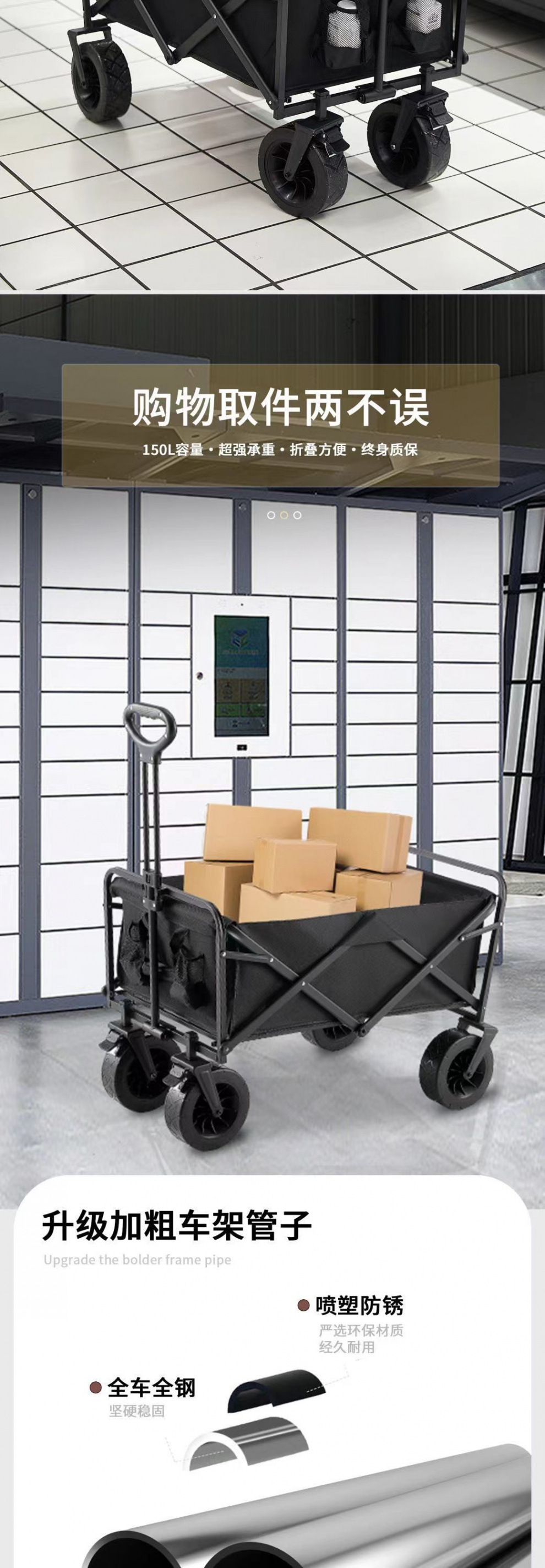 • [블랙] 대형/탱크 유니버설 휠 10inch개/더블 브레이크 접이식 야외 캠핑카 + 높고 길어진 접이식 테이블]