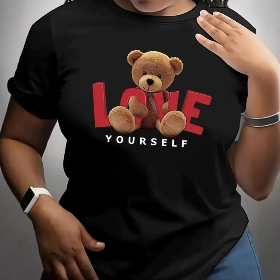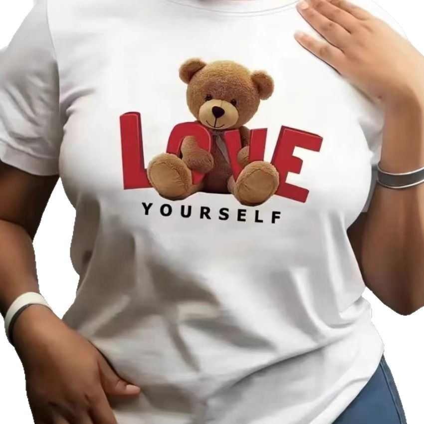 2024 년 여름 유럽과 미국 아마존 국경 핫 판매 새로운 인쇄 라운드 리더 느슨한 반팔 플러스 사이즈 탑 티셔츠스토어 가기