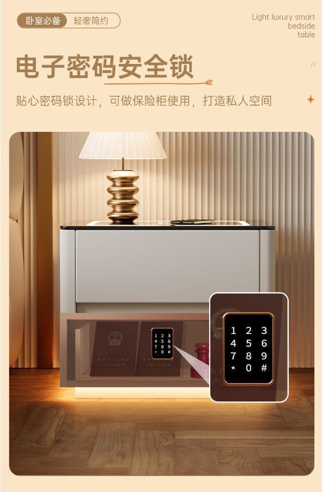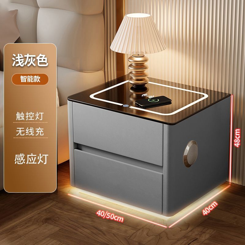 스마트 침대 옆 테이블 무선 충전 현대 간단한 단단한 나무 인터넷 유명한 다기능 빛 럭셔리 홈 침실 캐비닛 마스터 침실