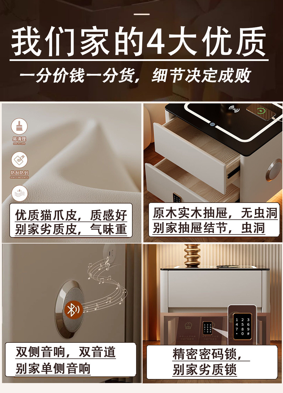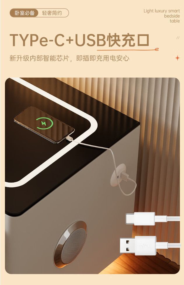 • 라이트 그레이 무선 충전 + 비밀번호 잠금 + 블루투스 스피커 + 센서 조명 + 3색 조명