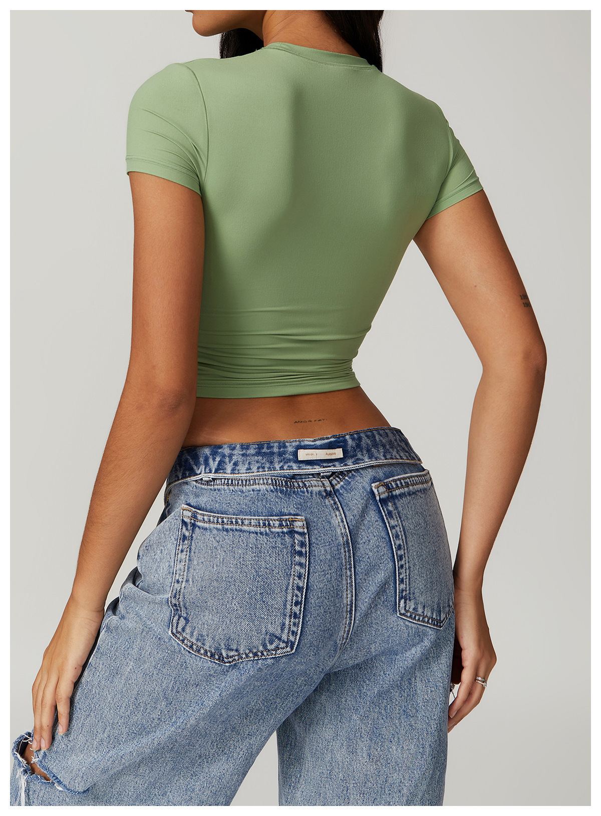여름 캐주얼 만능 타이트핏 속건성 피트니스탑 요가복 런닝 필라테스 스포츠 티셔츠 반팔 8743