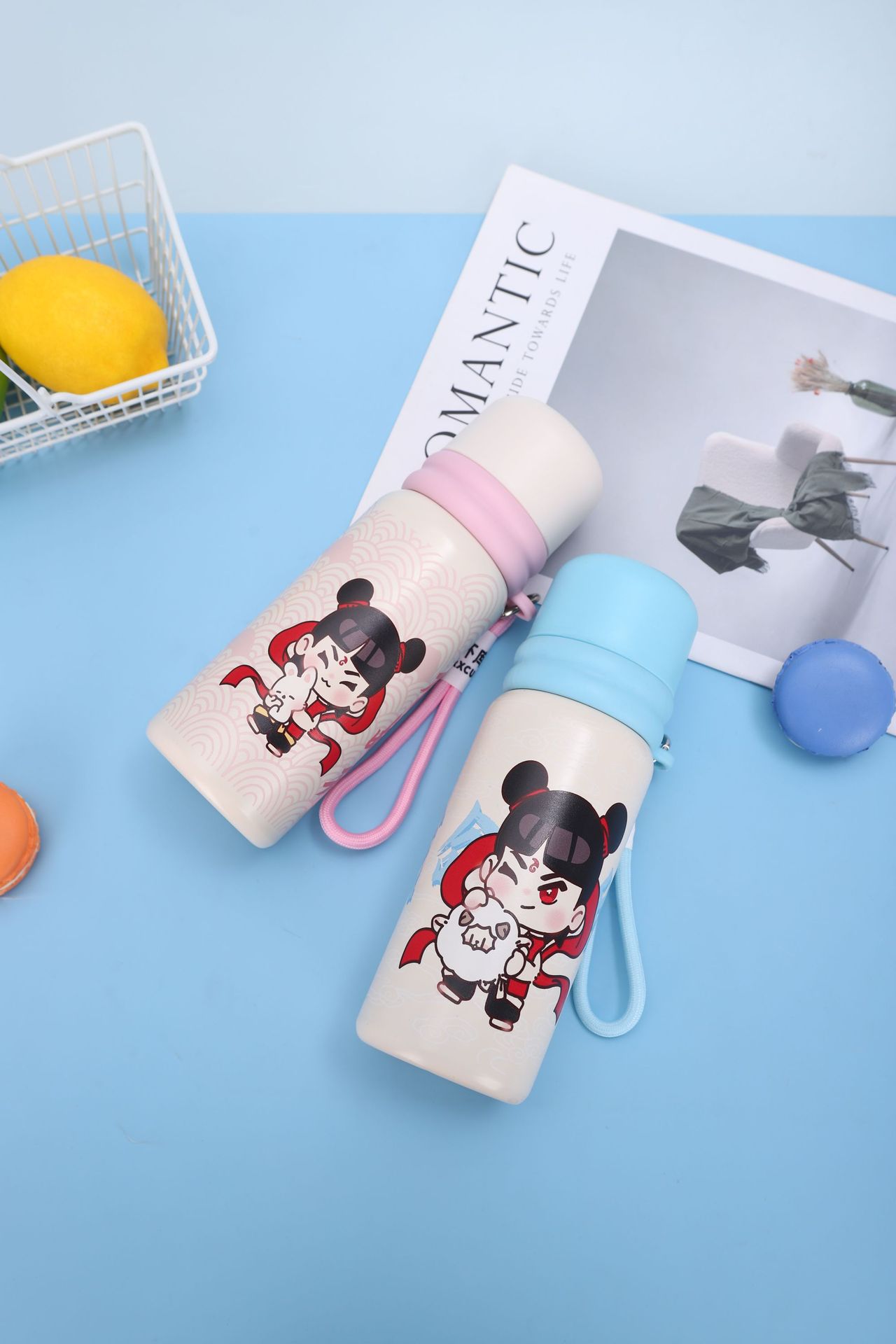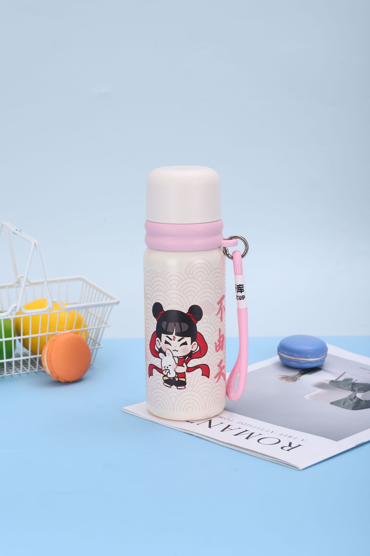 주변 물 컵, 대용량 316 스테인레스 스틸 학생 소년 소녀 컵 사랑스러운 같은 유형의 보온병 컵입니다.