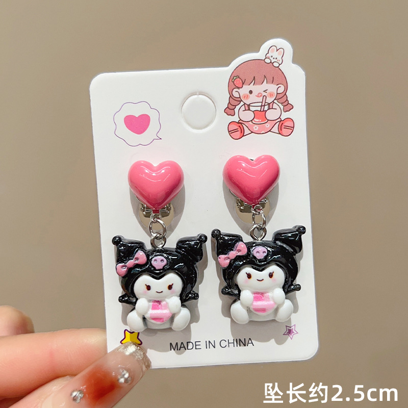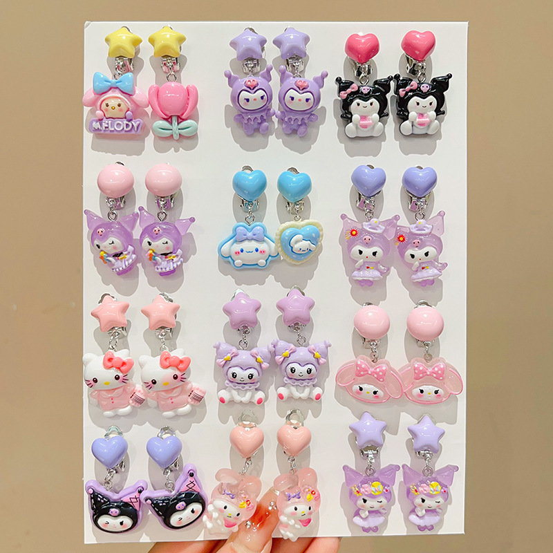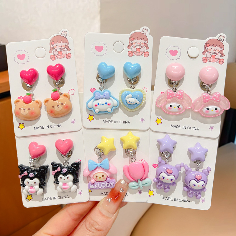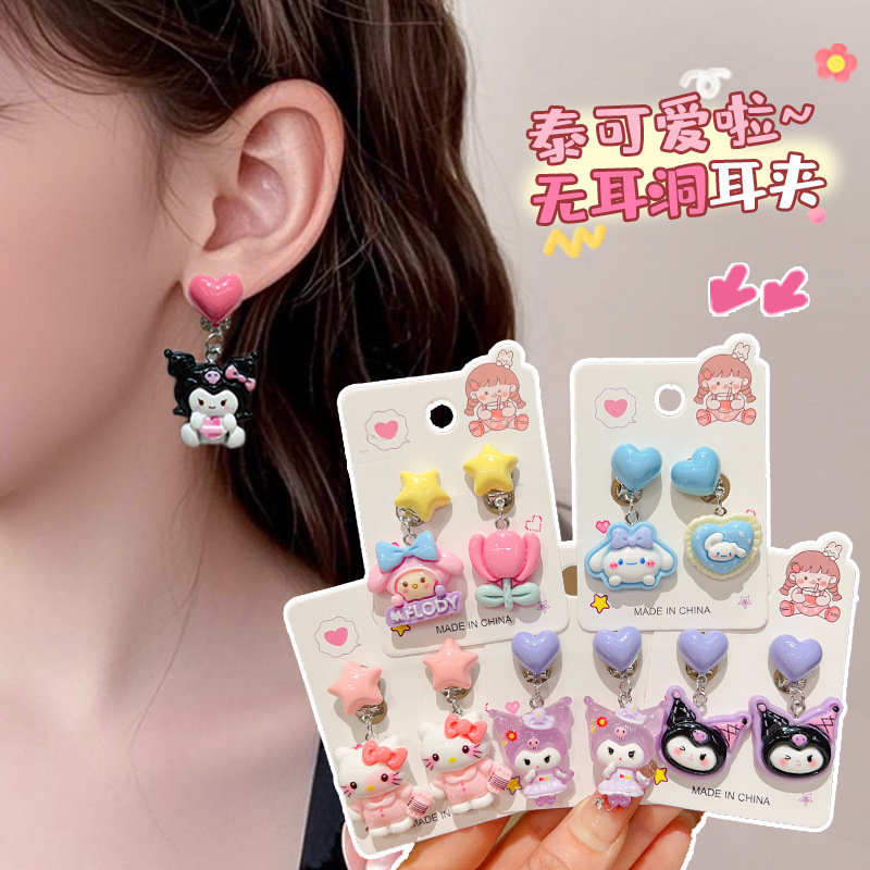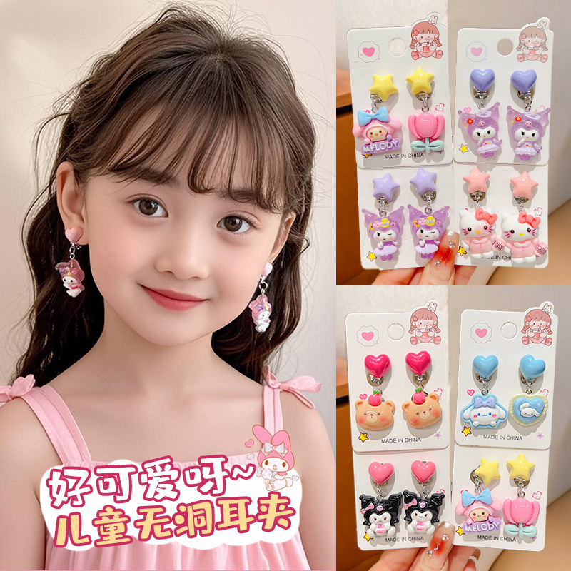 어린이 산리오 귀 클립 구멍 없음 소녀 쿨로 미 쥬얼리 아기 새로운 귀여운 공주 귀걸이 반지스토어 가기