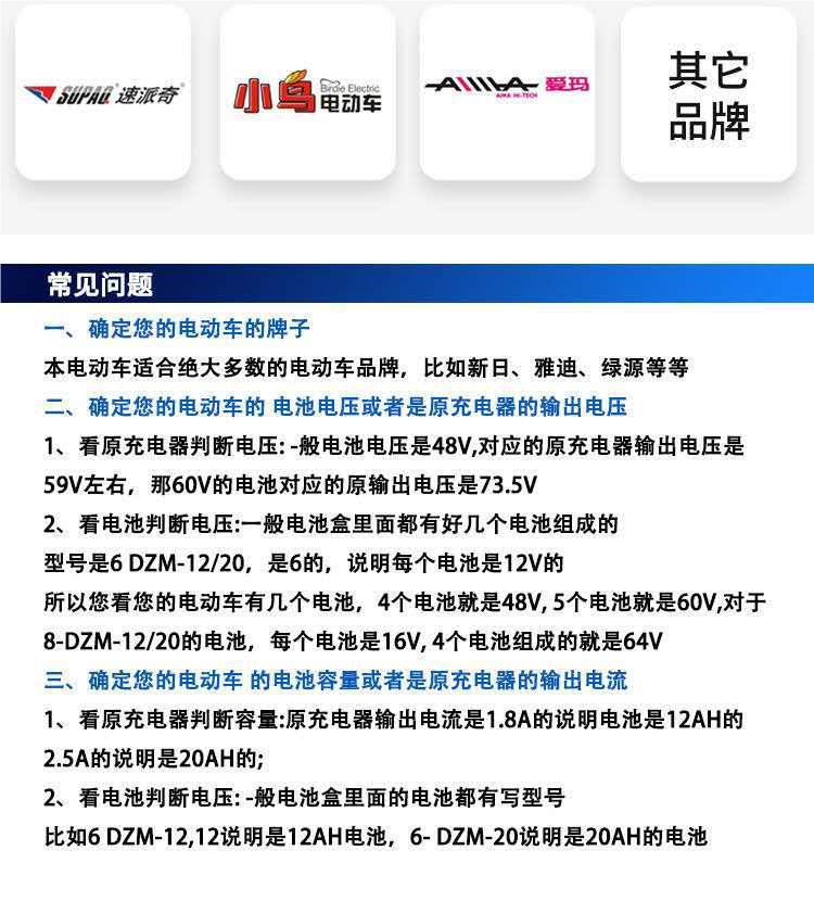 72V60V 적용 가능한 새로운 충전기 비 원래 1220 Yadi 전기 자동차 배터리 Yadi GB 48VAHAH스토어 가기