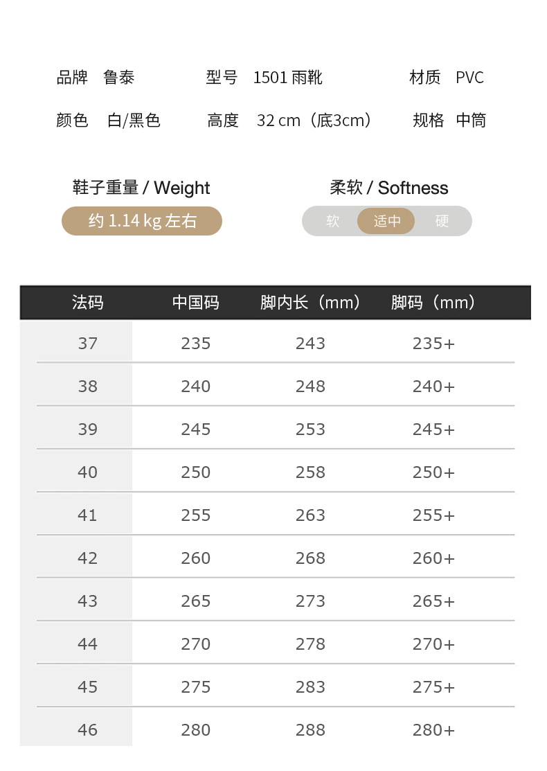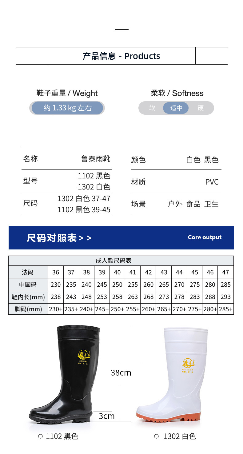 Lutai 위생 부츠 대형 방수 신발 남성용 PVC 식품 공장 가축 및 수산물 신발 내마모성 산 및 알칼리 방지 작업 신발