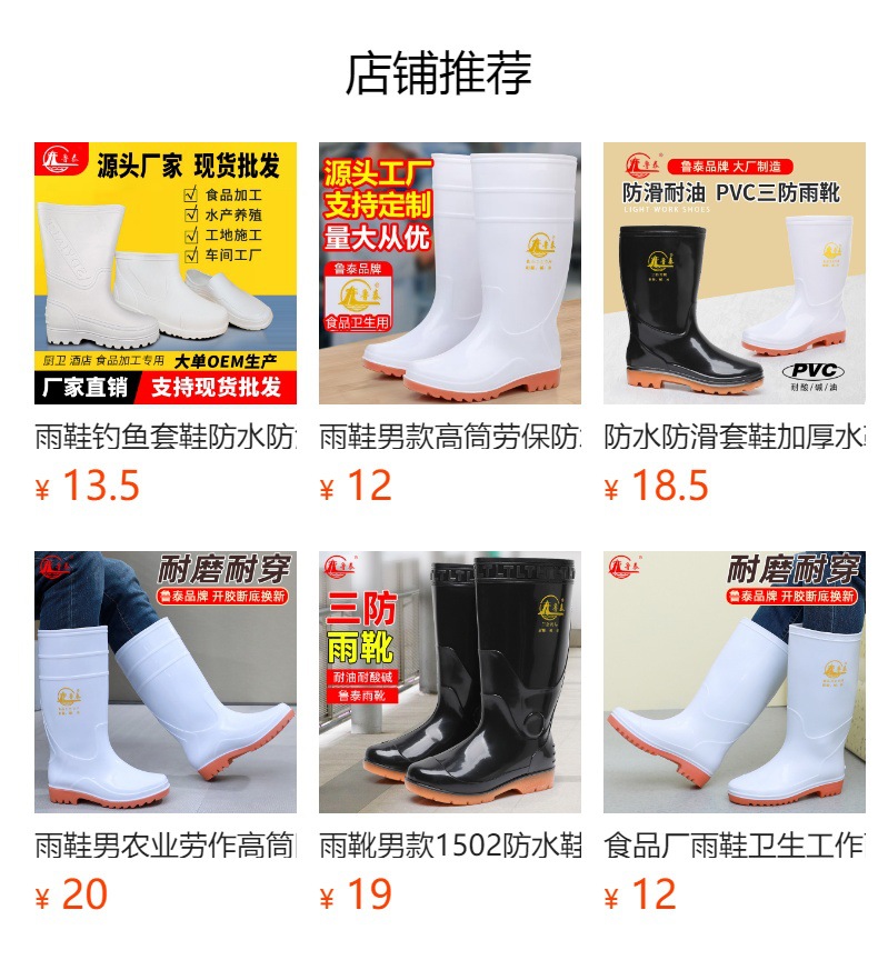 Lutai 위생 부츠 대형 방수 신발 남성용 PVC 식품 공장 가축 및 수산물 신발 내마모성 산 및 알칼리 방지 작업 신발스토어 가기