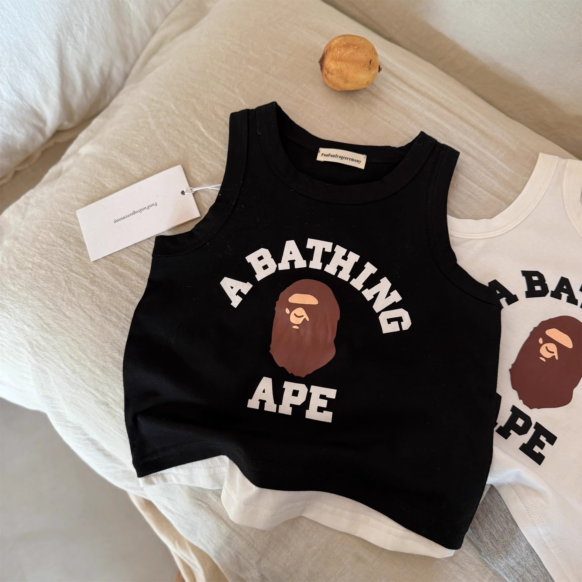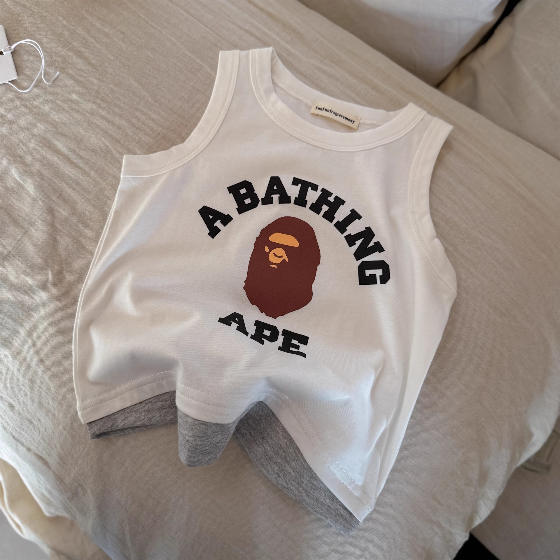 어린이 조끼 소년 '2025 여름 일본 유행 만화 머리 아기 어린이 서양식 가짜 투피스 민소매 조끼