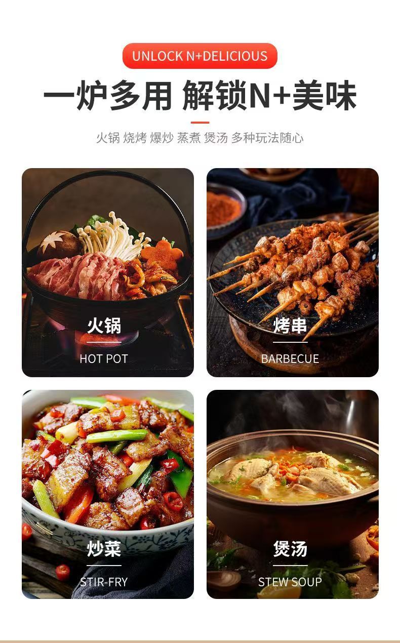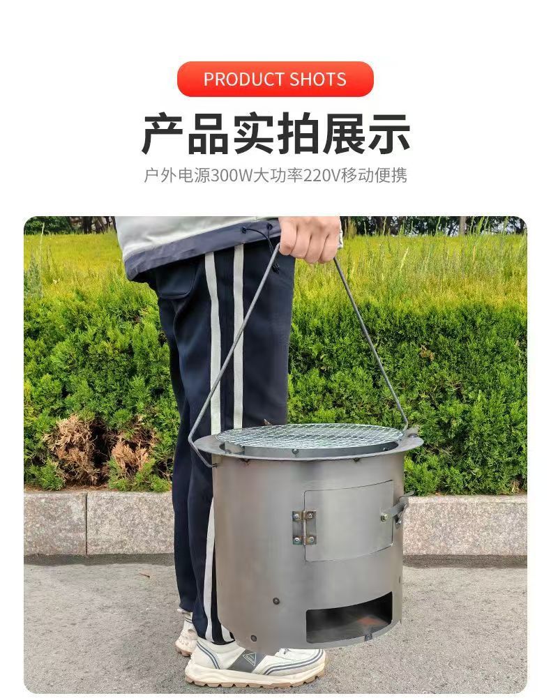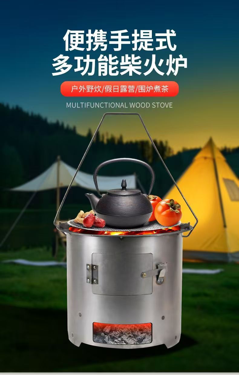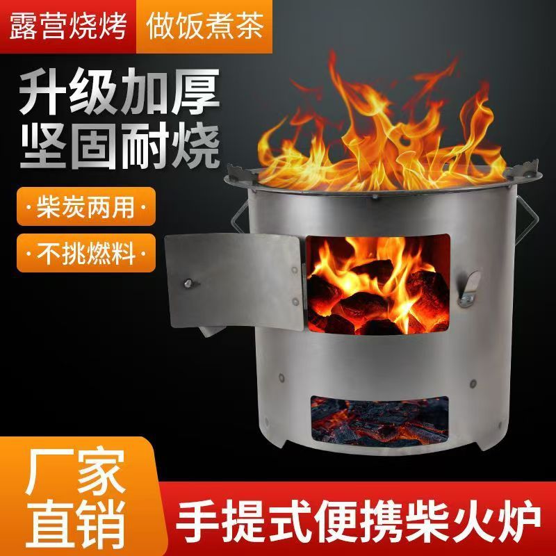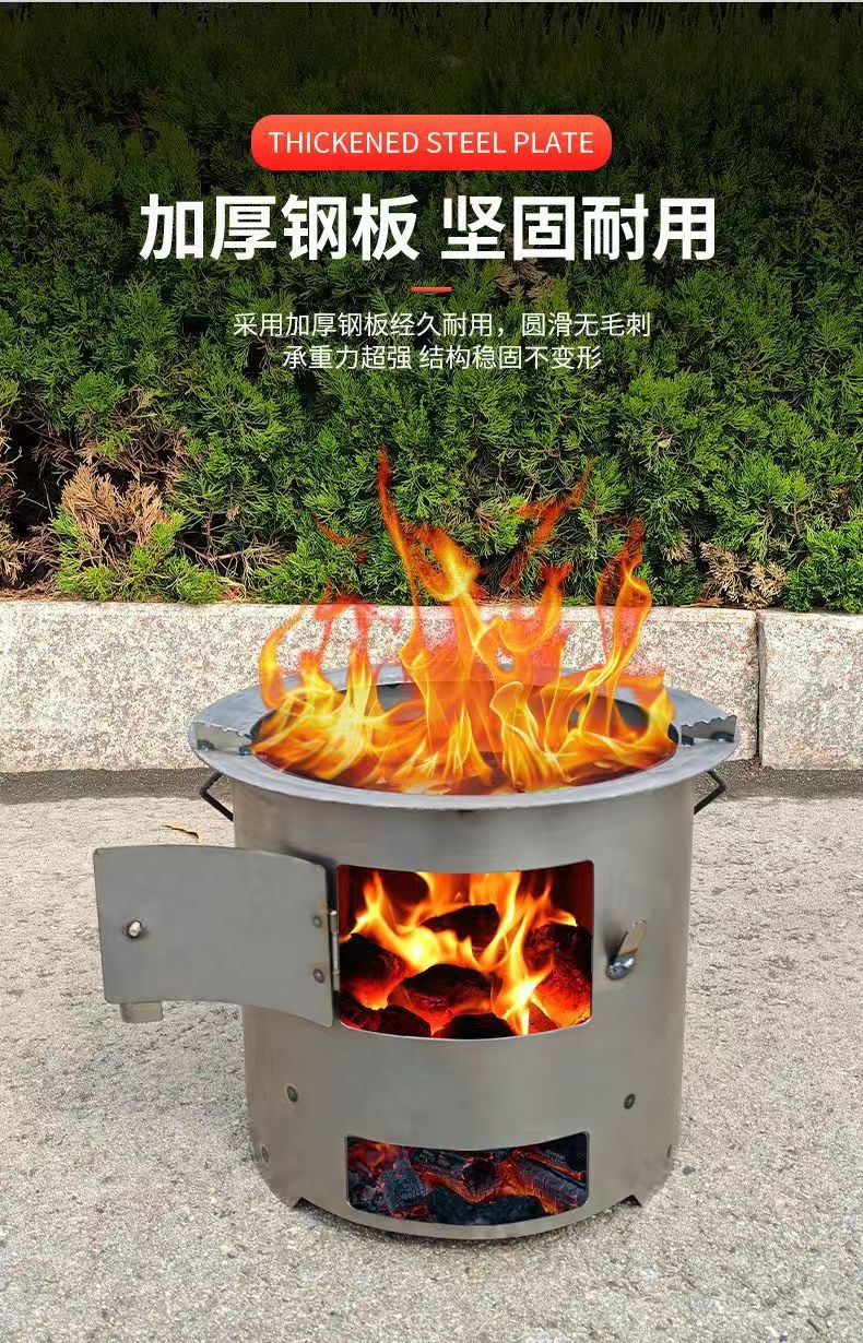 야외 휴대용 베이킹 스토브 인서클 스토브 차 난방 다기능 철 인서클 스토브 우드 버닝 두꺼운 숯 바베큐 오븐