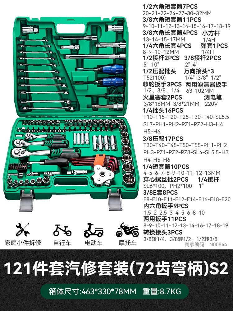 • 121피스 자동 수리 세트 [72톱니 곡선 핸들] 업그레이드 버전