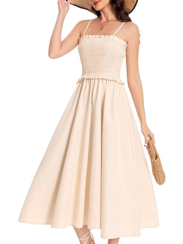 2025 여름 원피스 세트 여성 프랑스 스타일 첫사랑 부드러운 스타일 슈퍼 페어리 타이트 허리 슬링과 긴 원피스 슬리밍