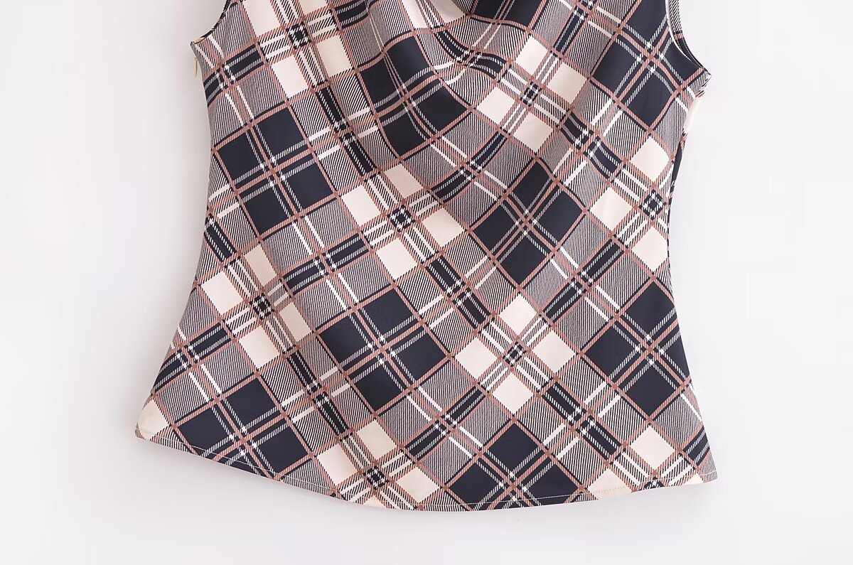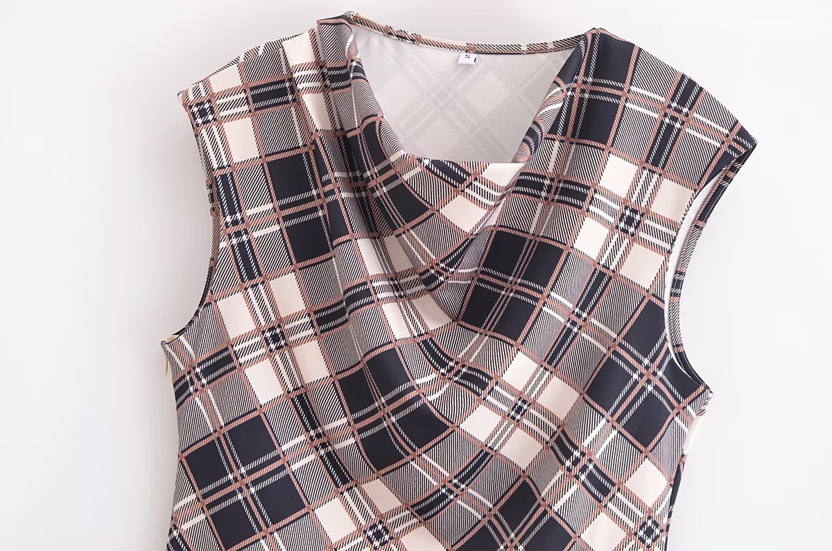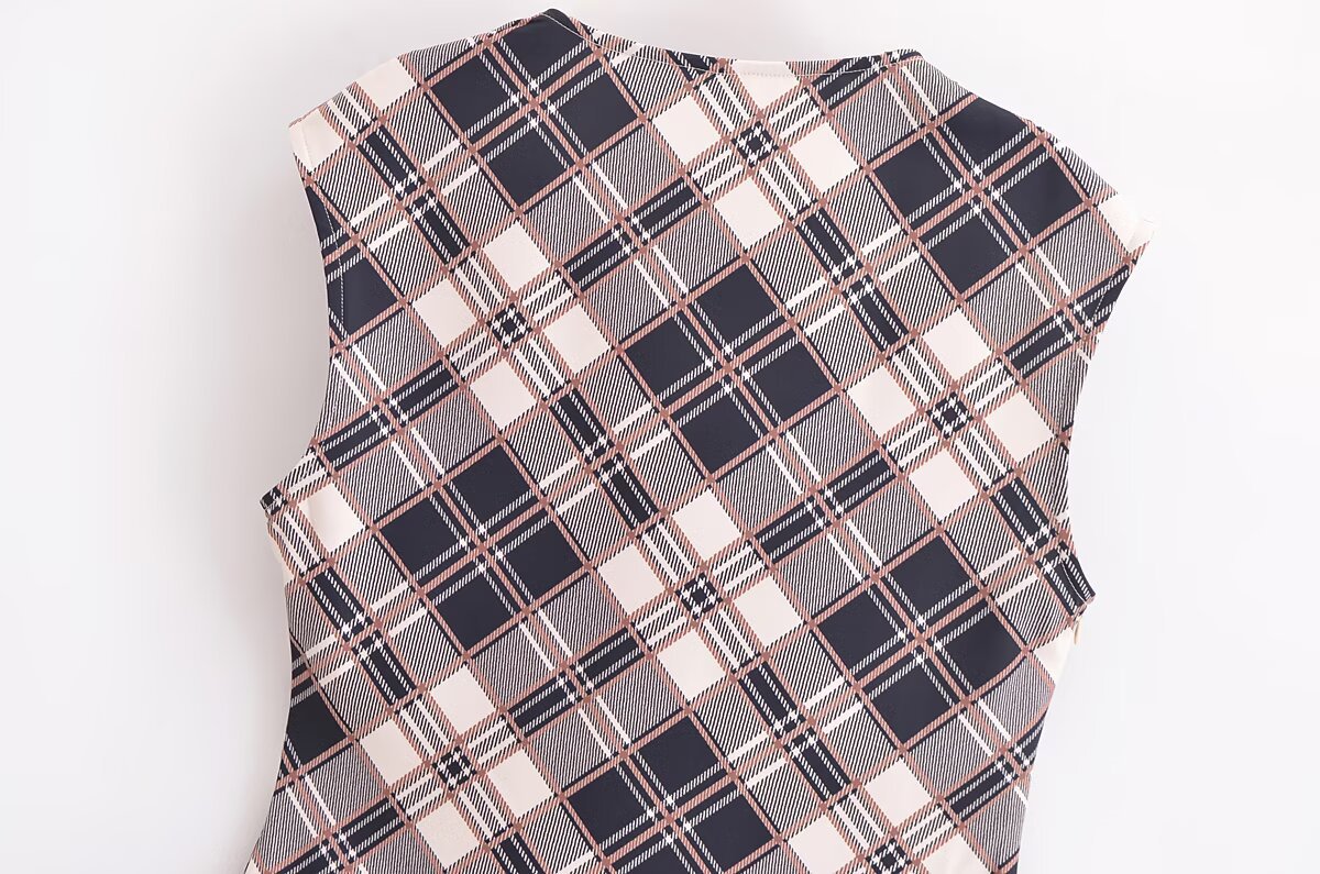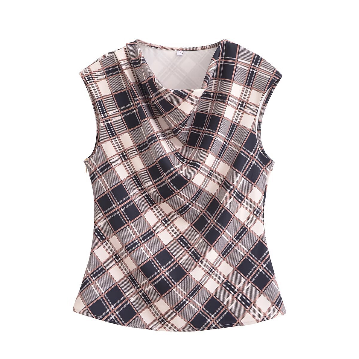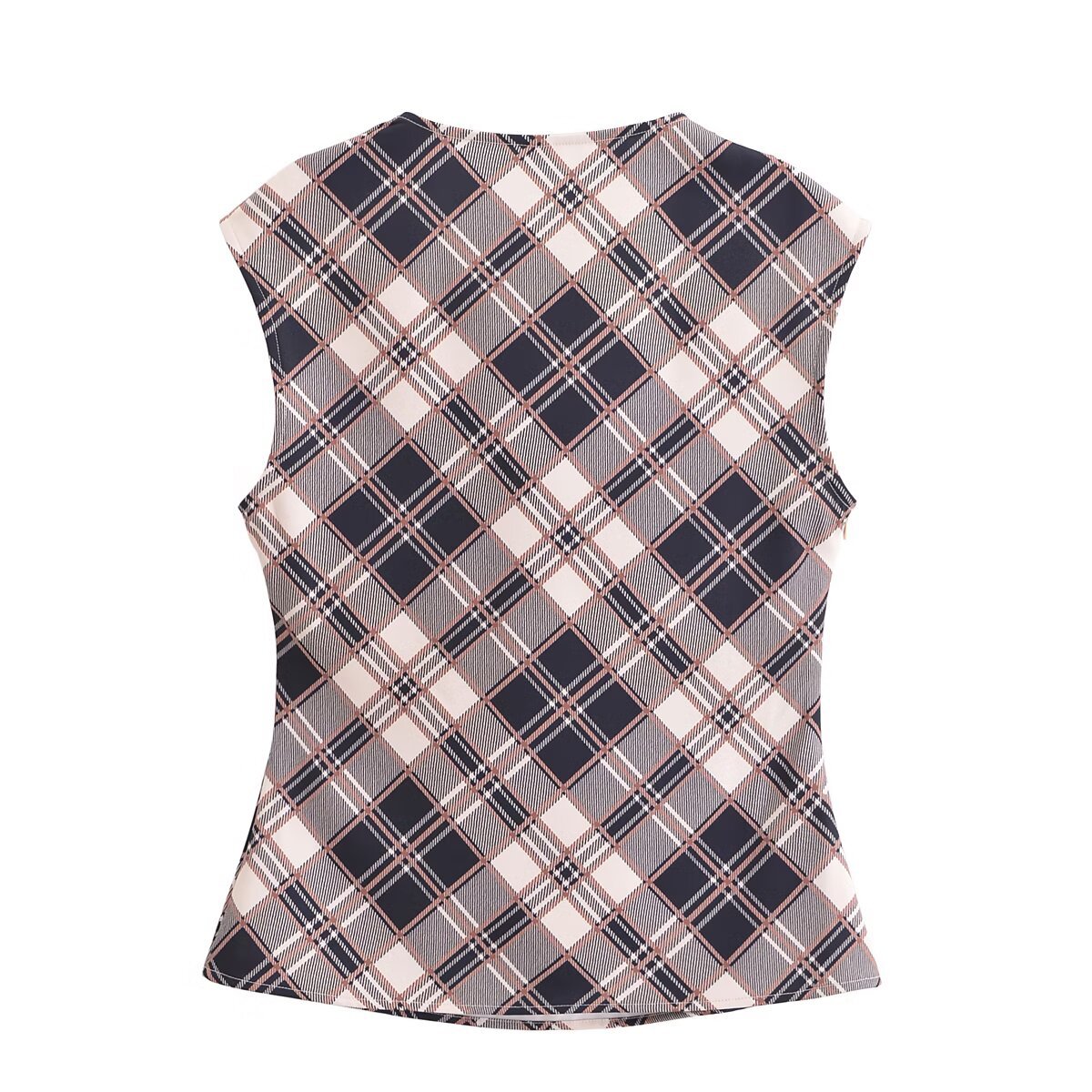 2025 봄 새로운 유럽과 미국의 국경 여성 거리 패션 격자 무늬의 불규칙한 조끼 톱 w021 82093