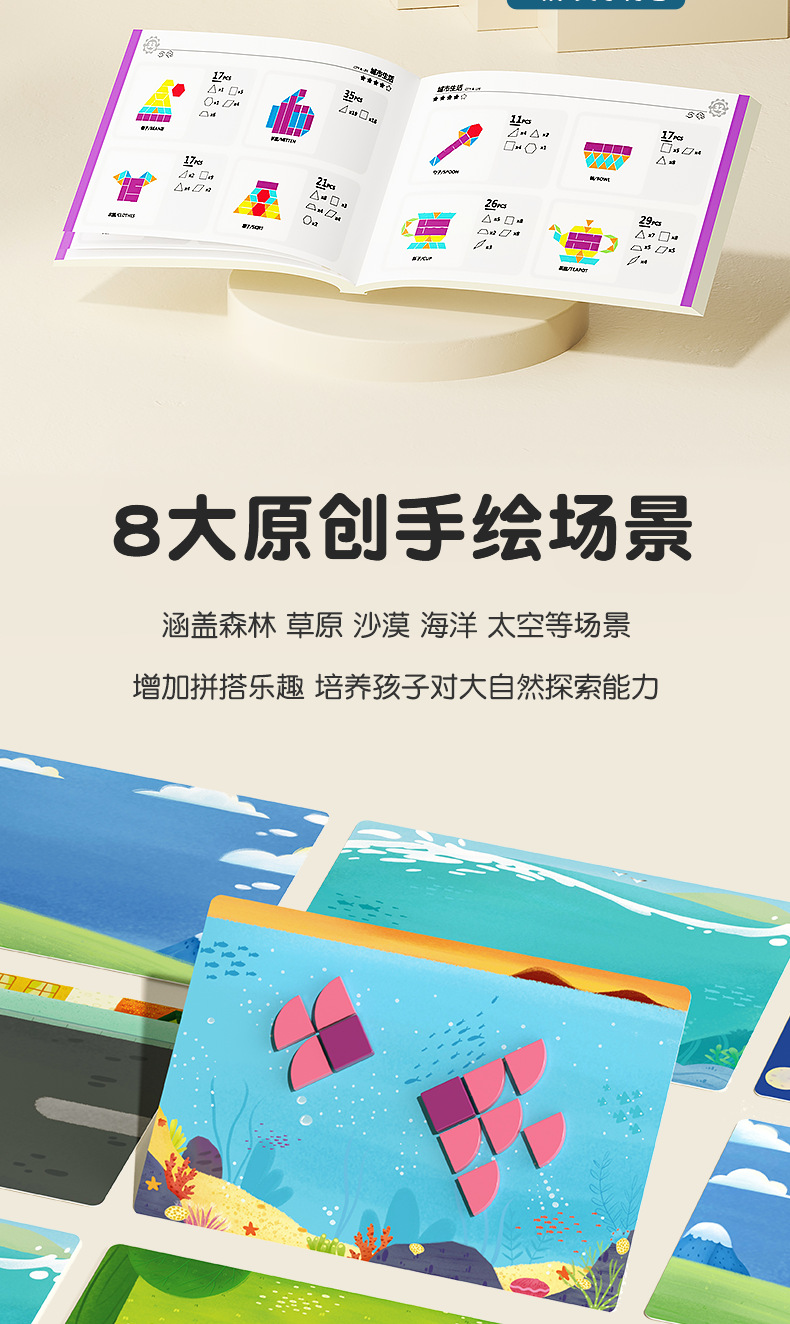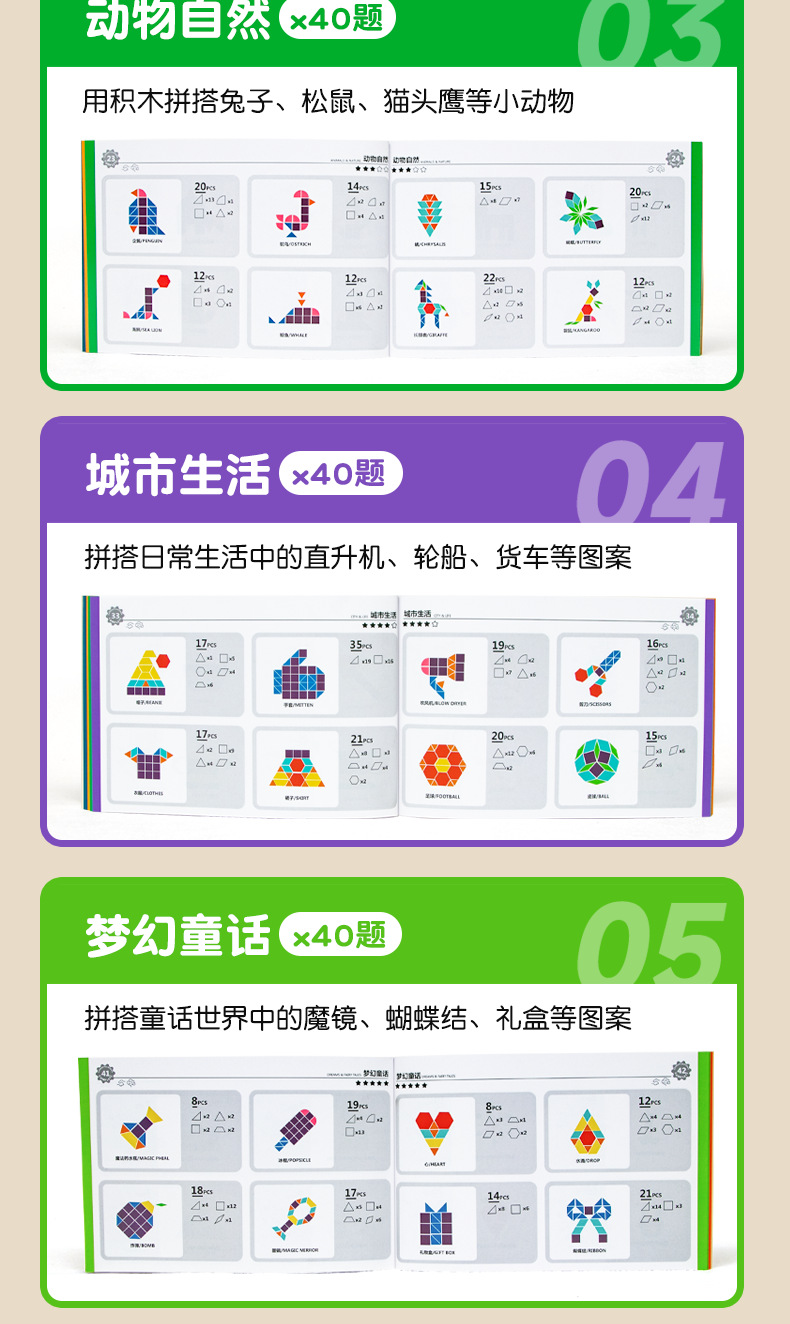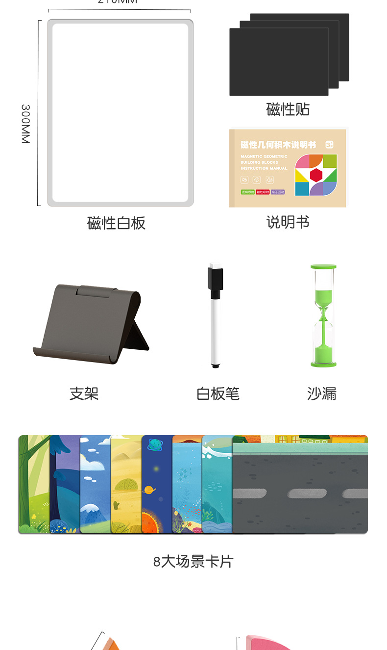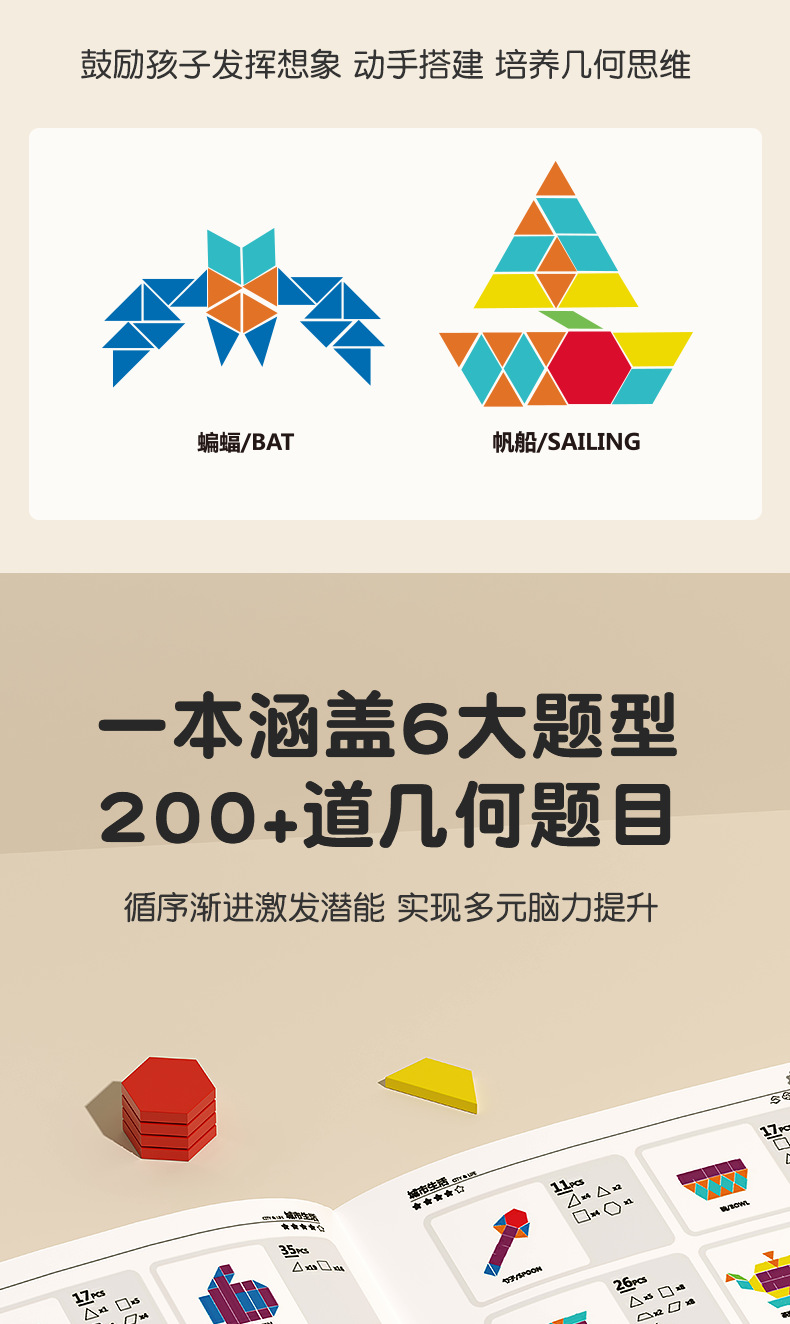 • 210개의 자기 기하학 퍼즐 빌딩 블록 240개의 고급 사고 훈련 질문 [나무 상자 보관]