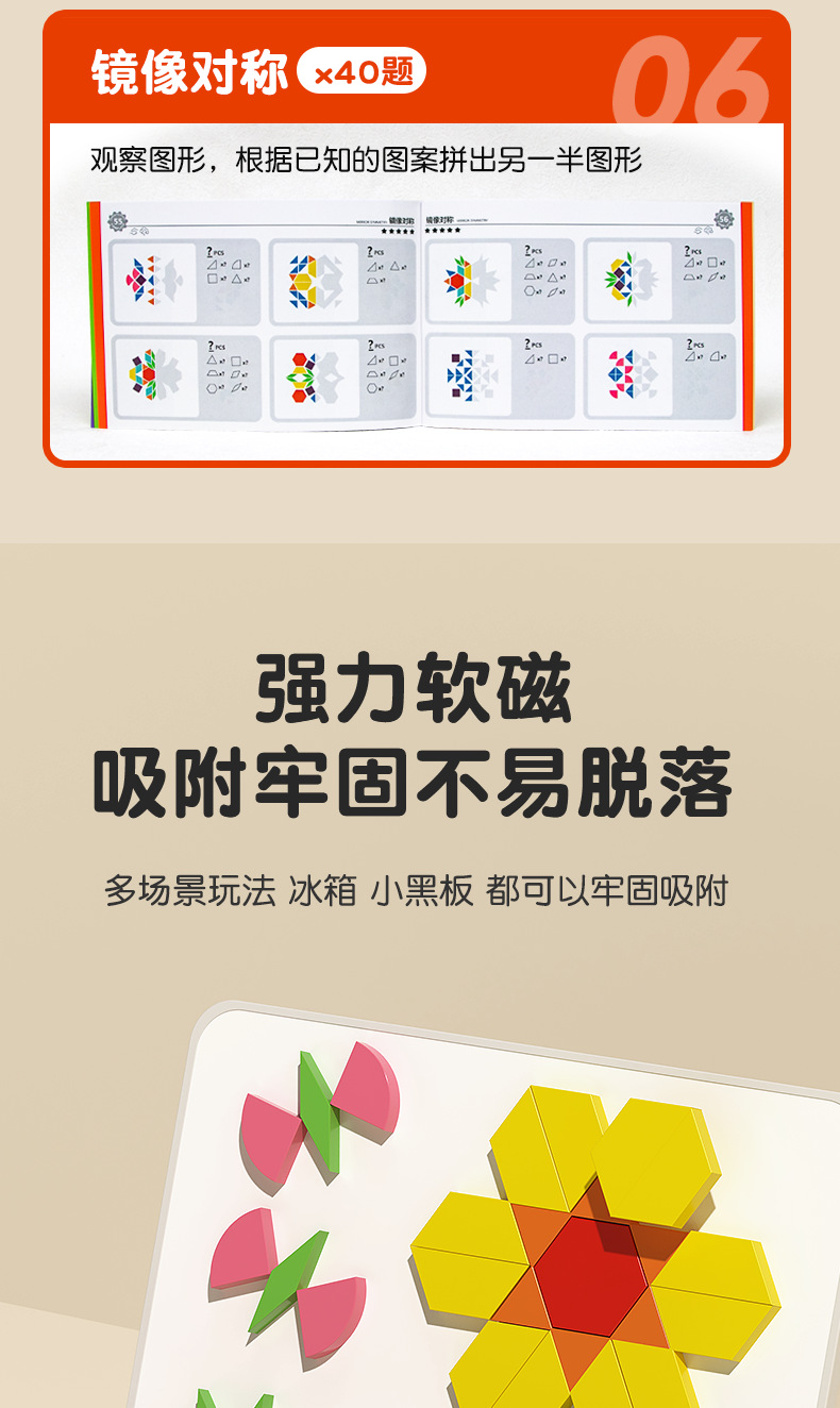 자석 퍼즐 칠교형 입체 기하학 자석 블록 유아 유치원 교육용 장난감 졸업 선물