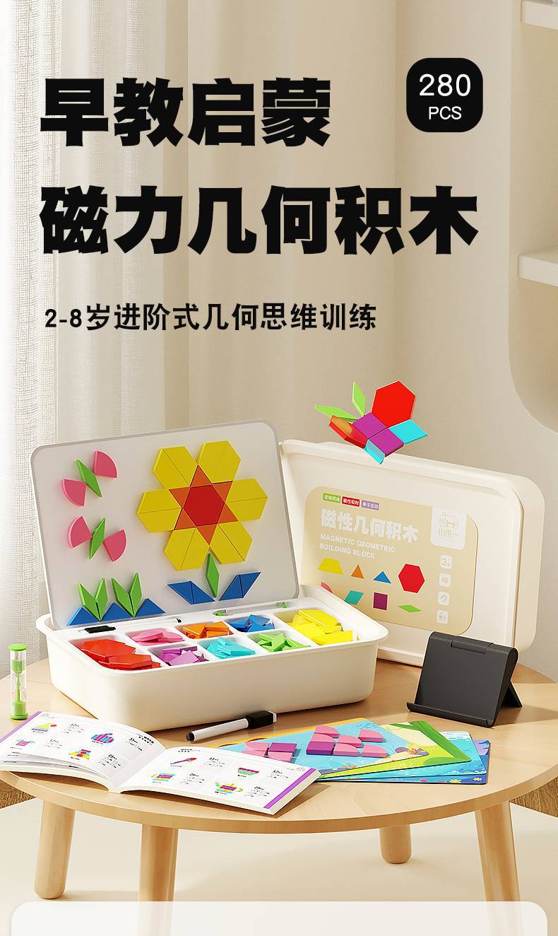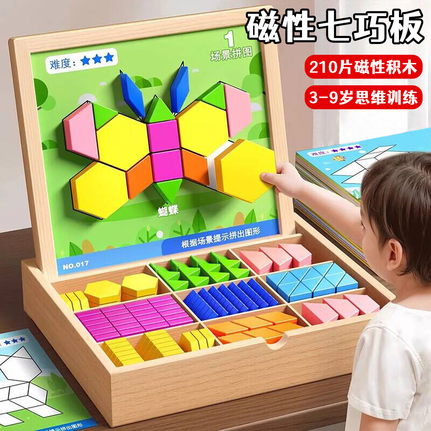 자석 퍼즐 칠교형 입체 기하학 자석 블록 유아 유치원 교육용 장난감 졸업 선물스토어 가기