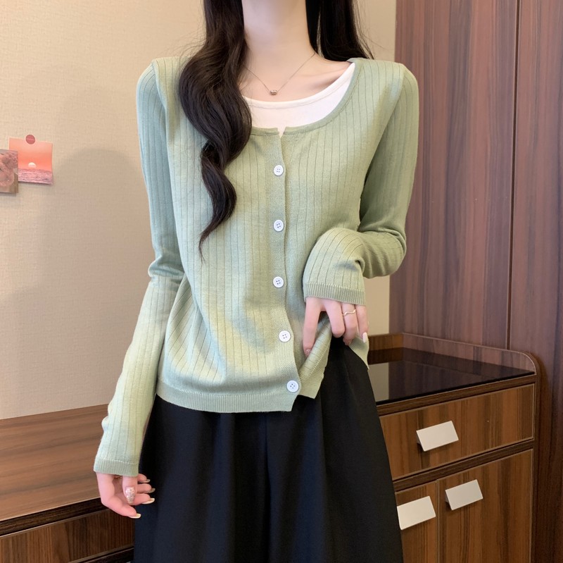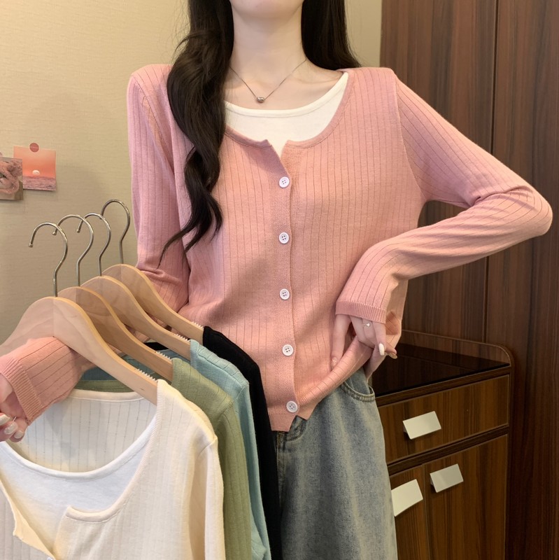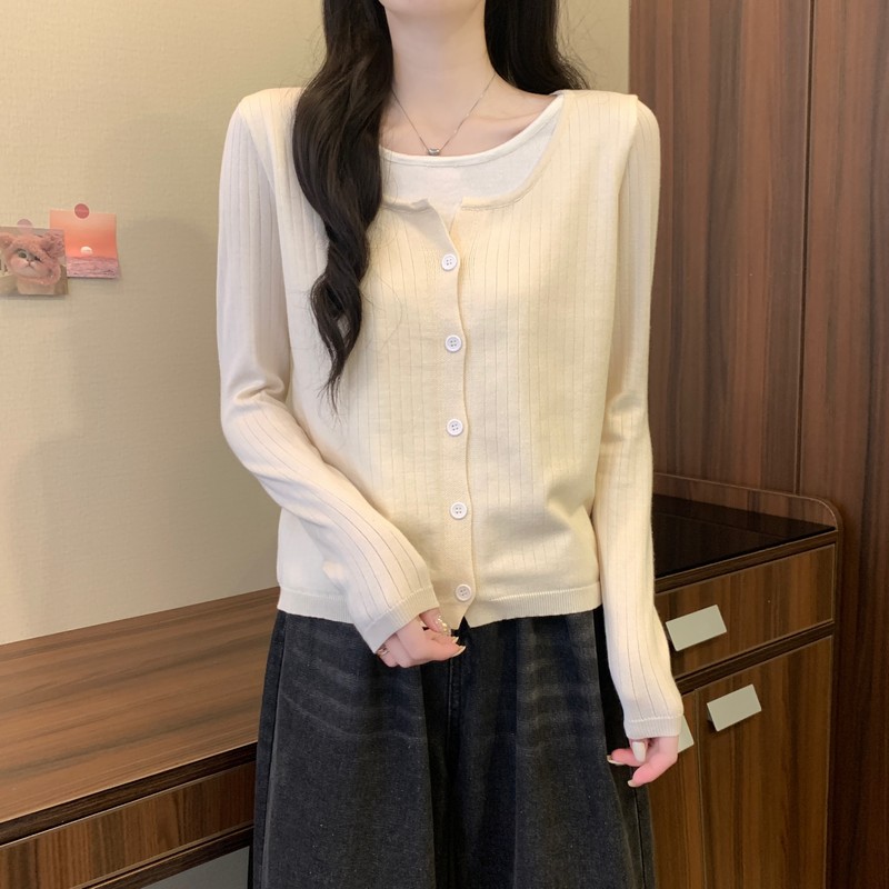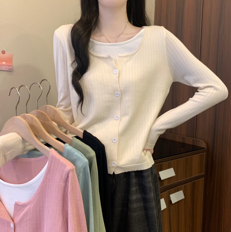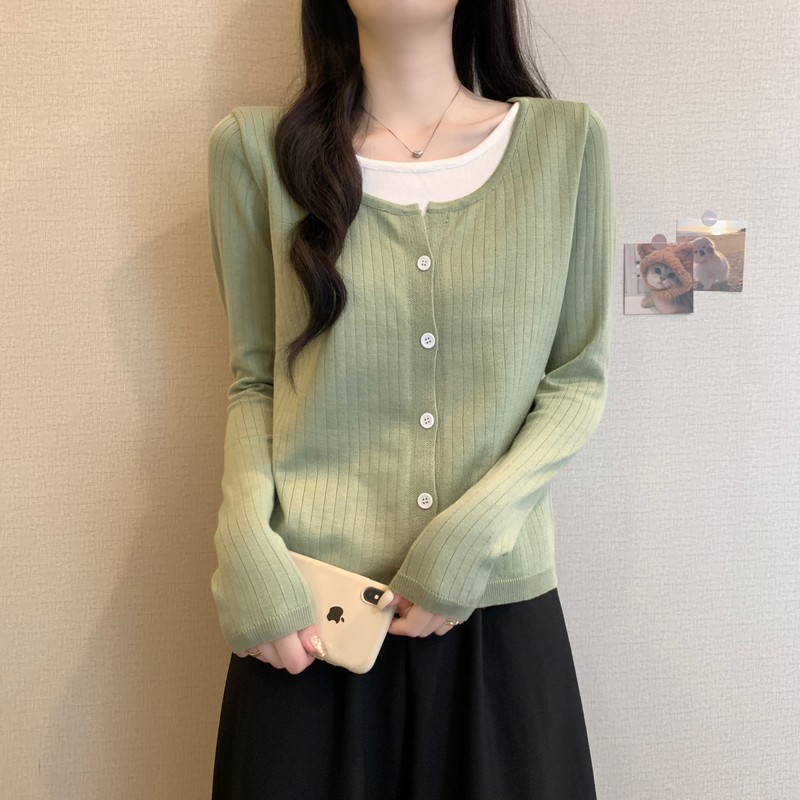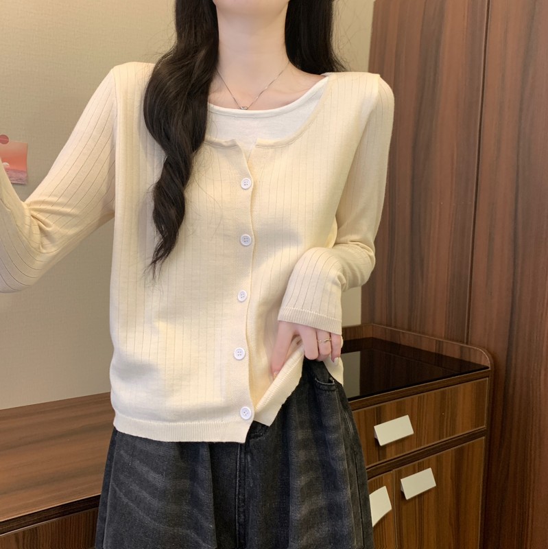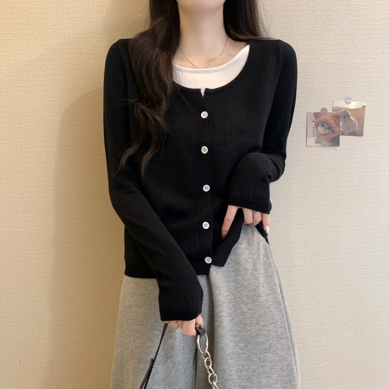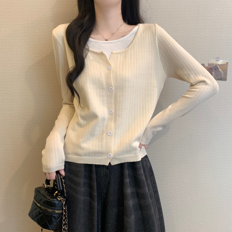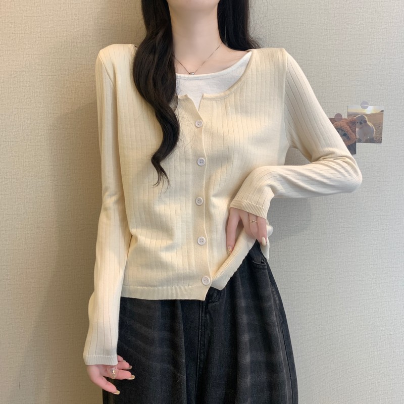 가짜 투피스 니트 베이스 셔츠 여자 봄 2025 새로운 내부 착용 스웨터 미우 쇼트탑을 입고스토어 가기