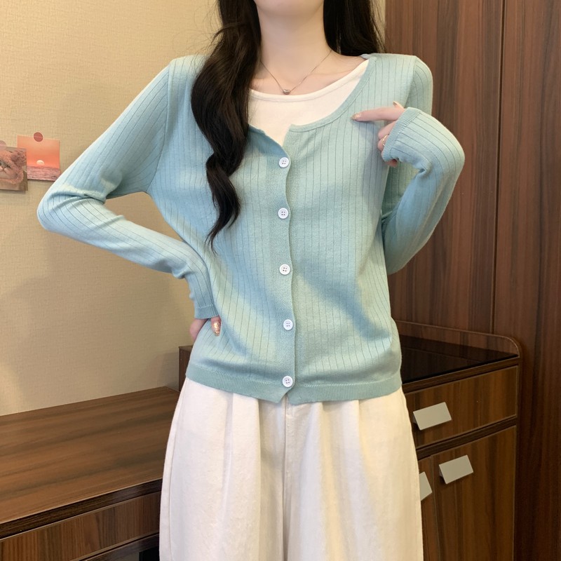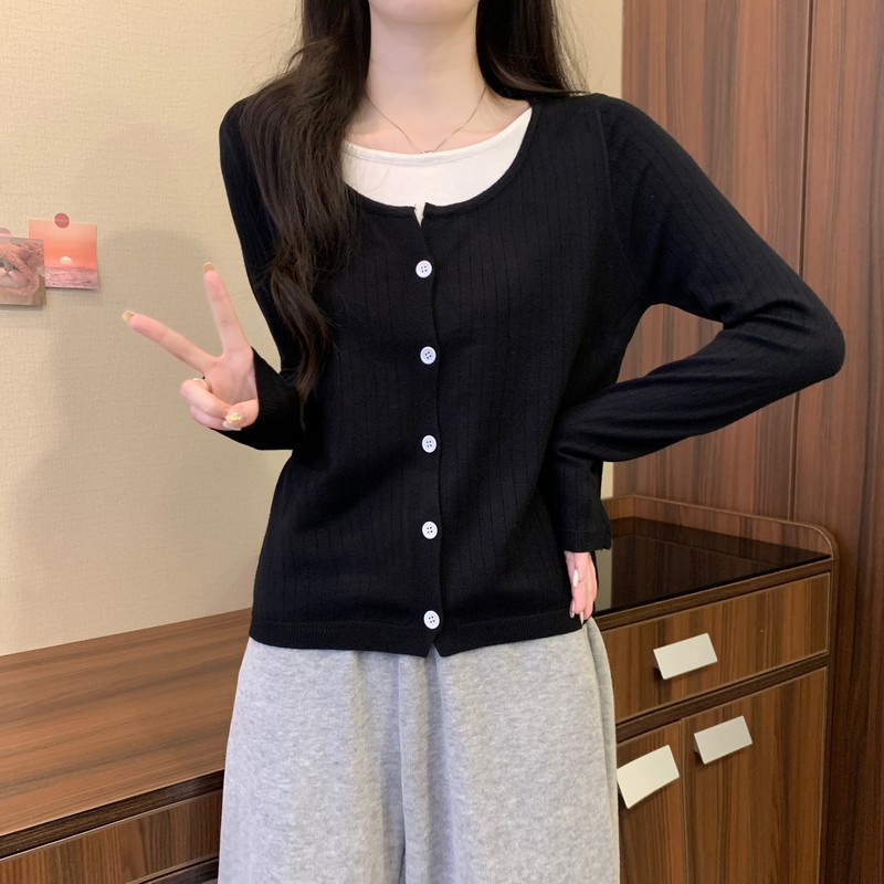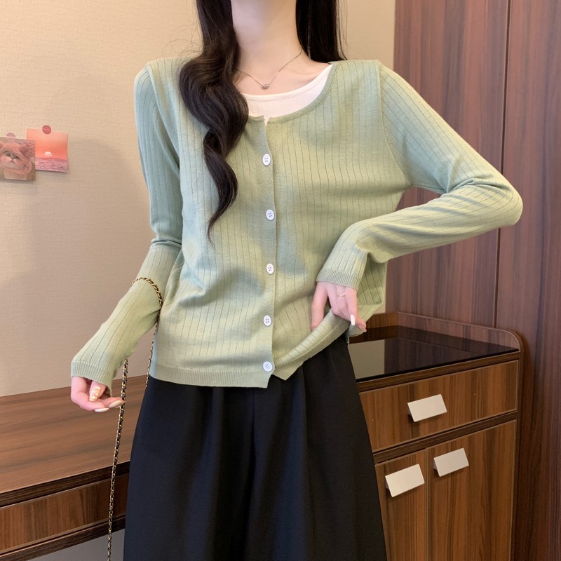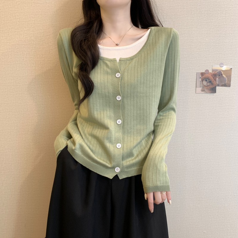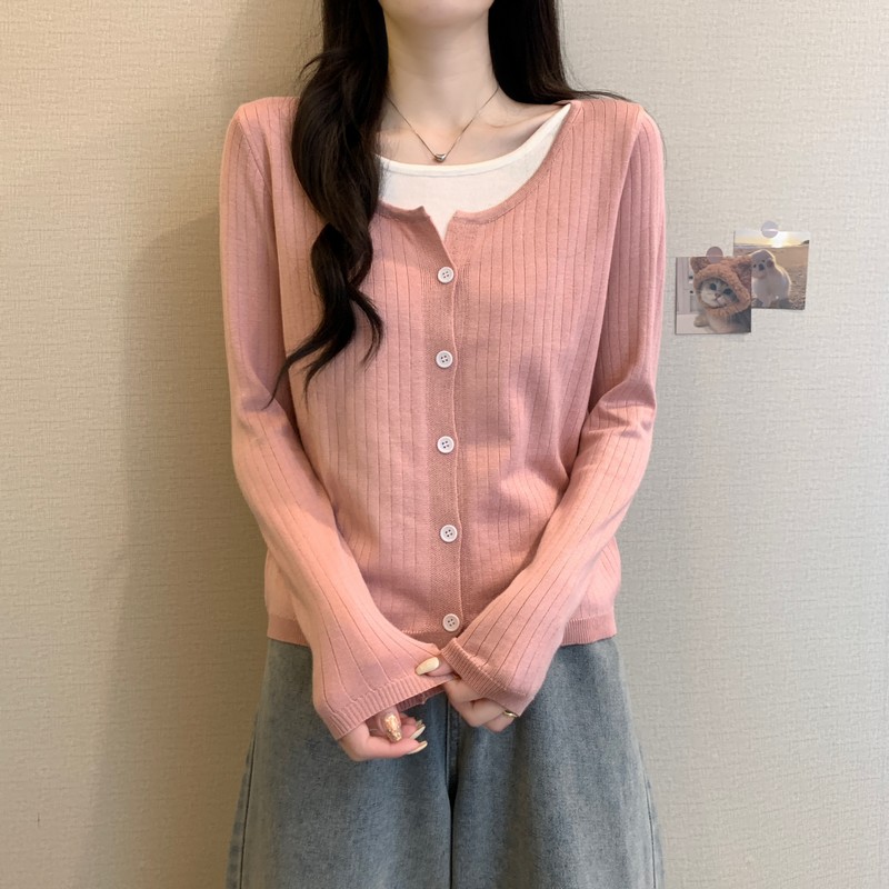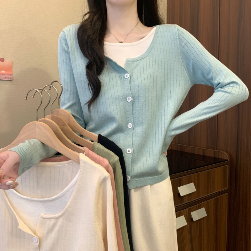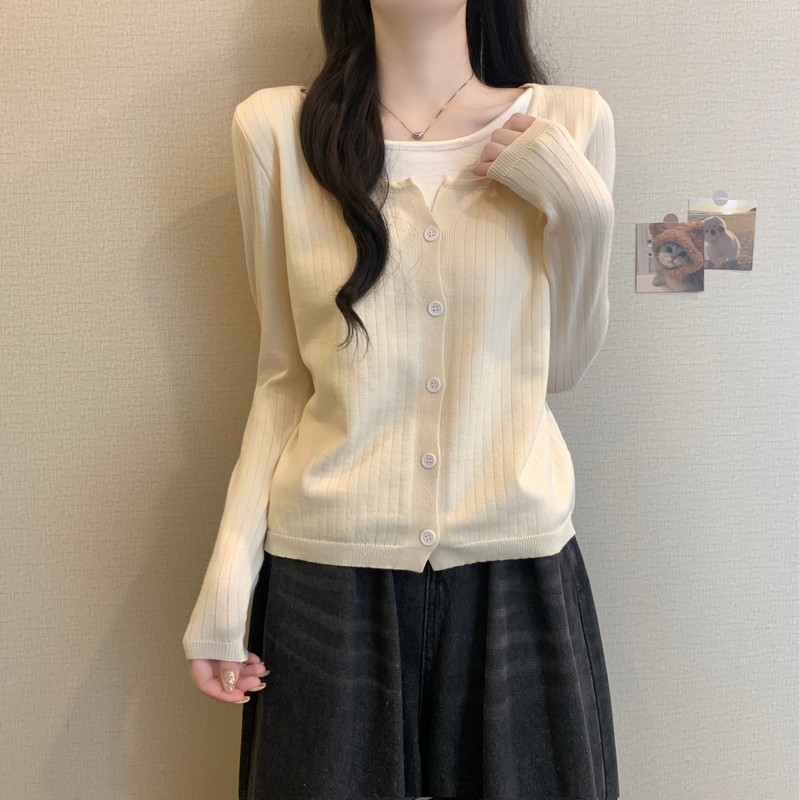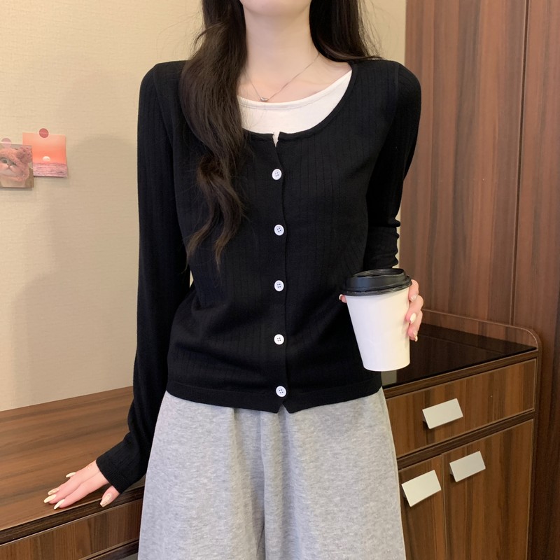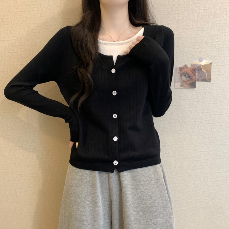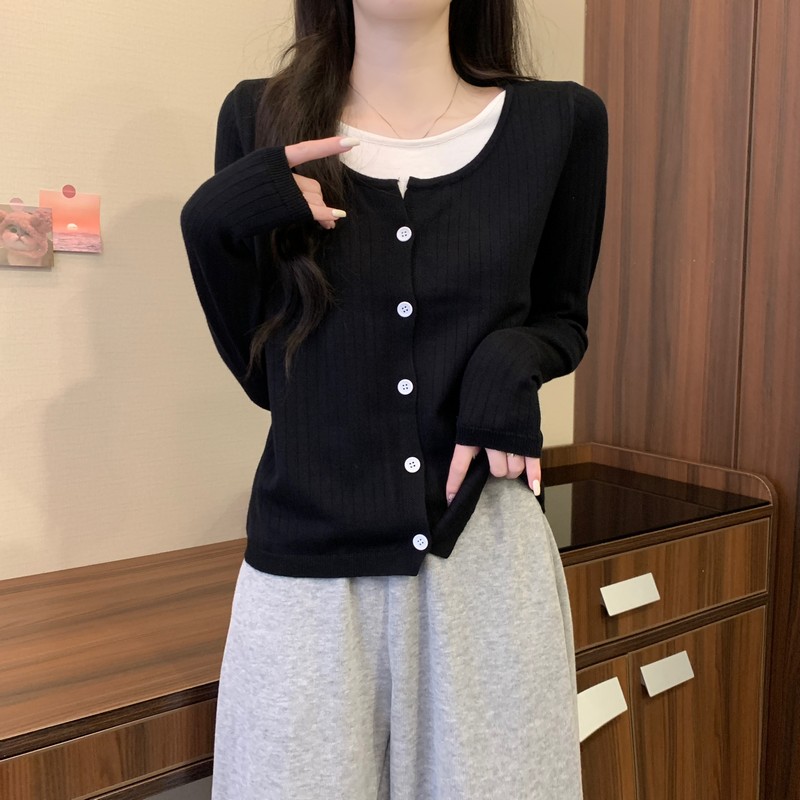 가짜 투피스 니트 베이스 셔츠 여자 봄 2025 새로운 내부 착용 스웨터 미우 쇼트탑을 입고스토어 가기