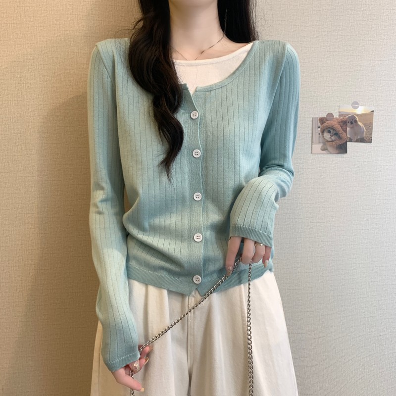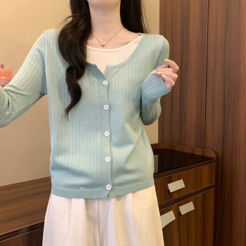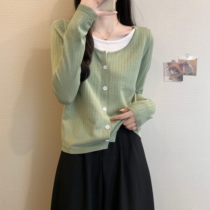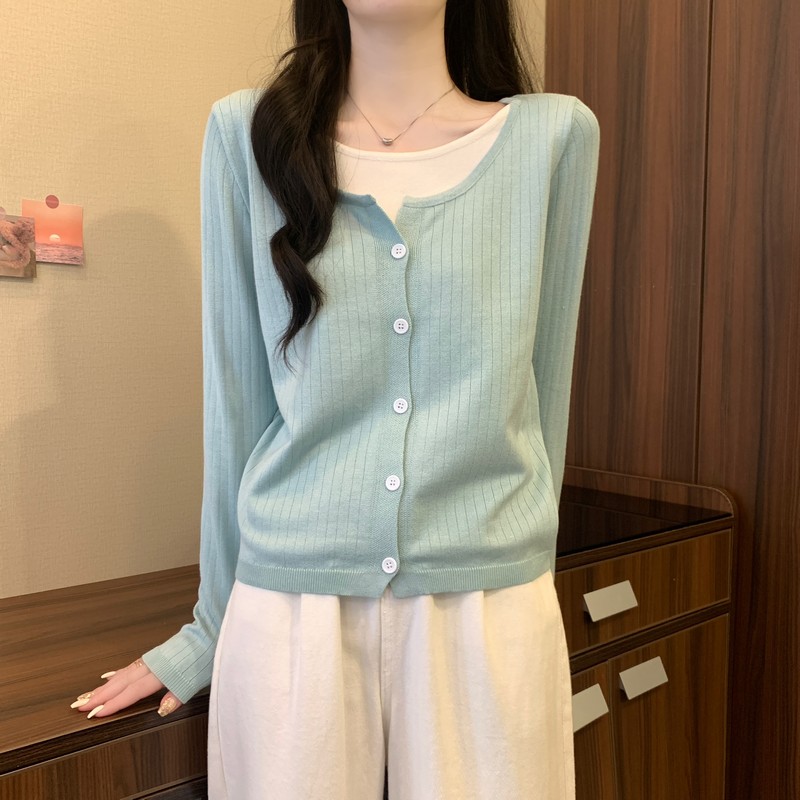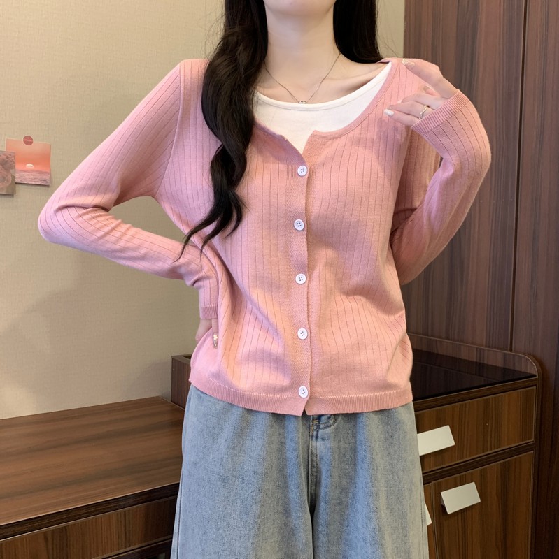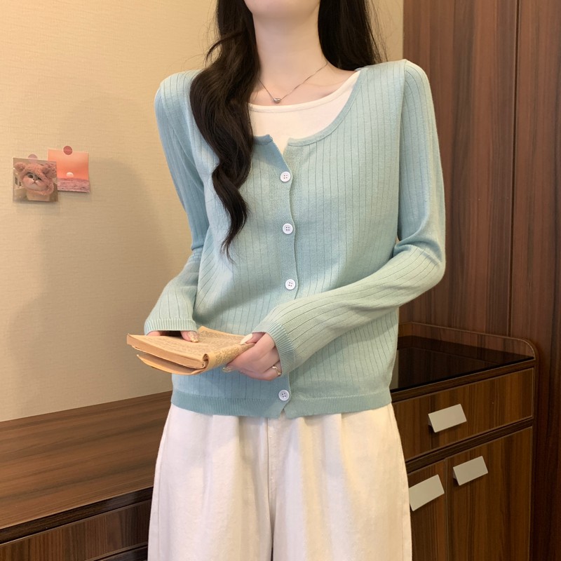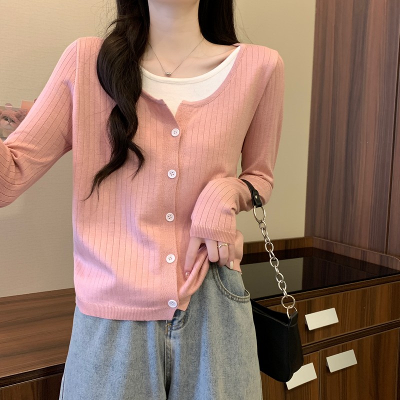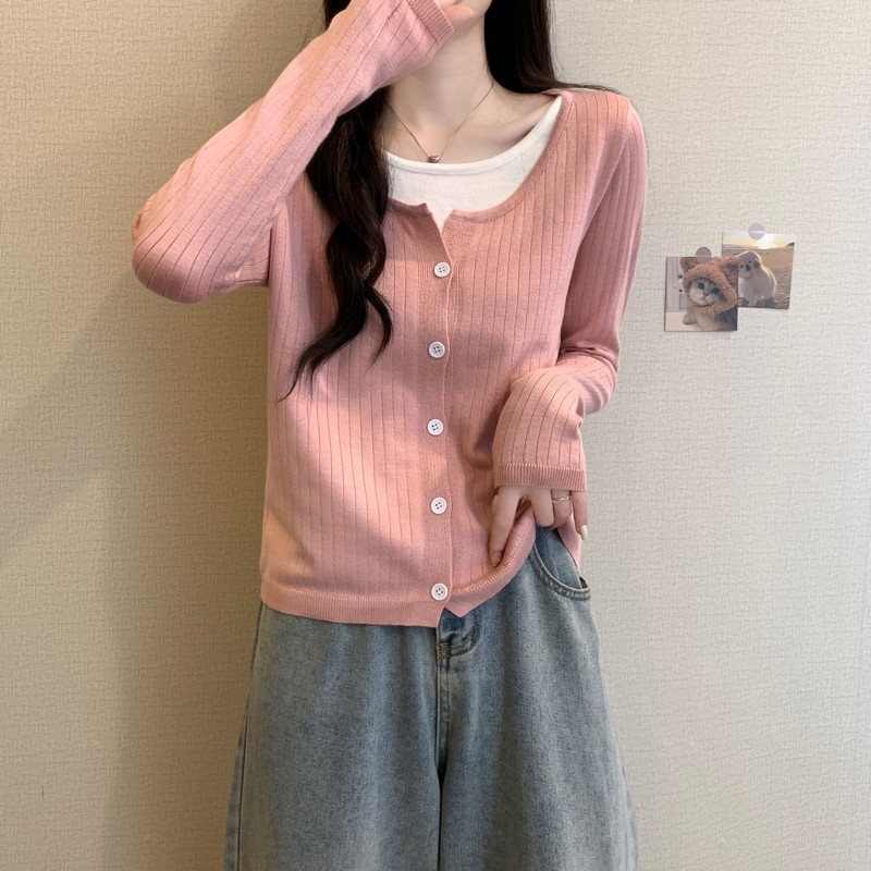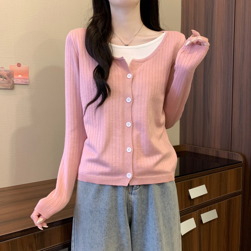 가짜 투피스 니트 베이스 셔츠 여자 봄 2025 새로운 내부 착용 스웨터 미우 쇼트탑을 입고스토어 가기