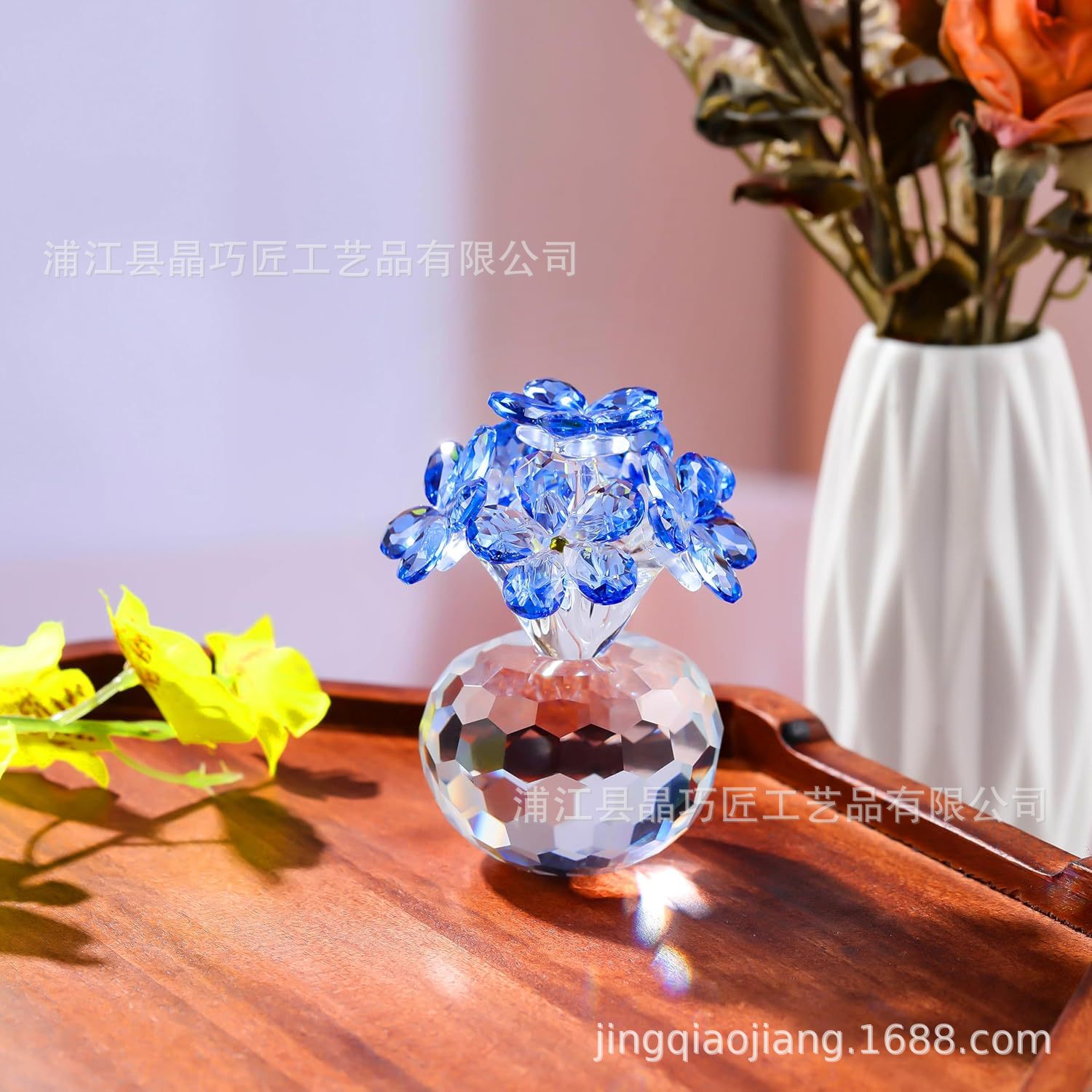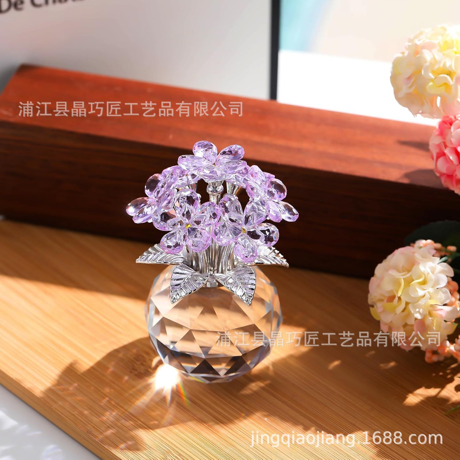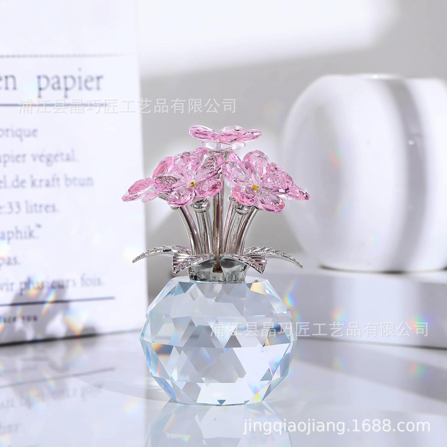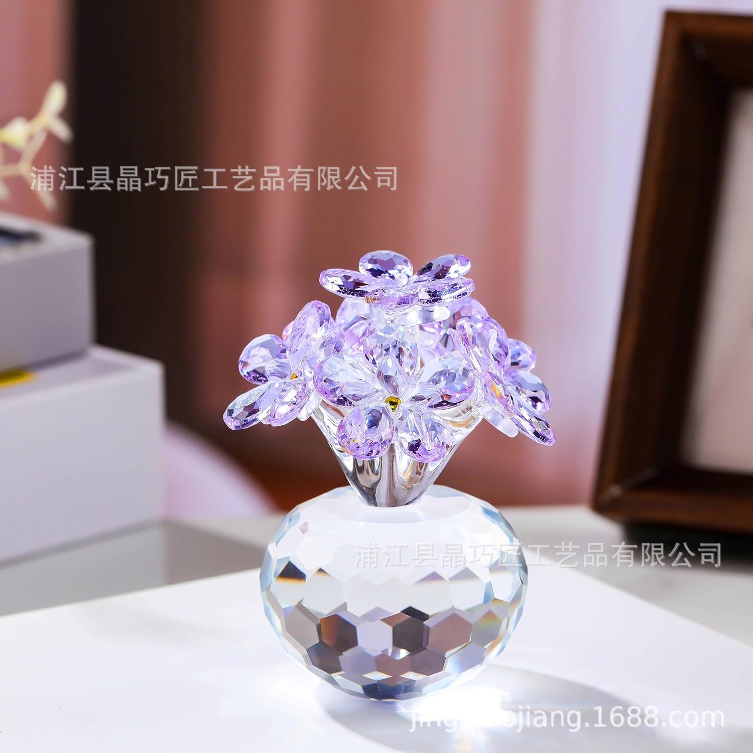 水晶六朵花摆件 北欧风家居装饰品 永恒爱情主题跨境批发礼品