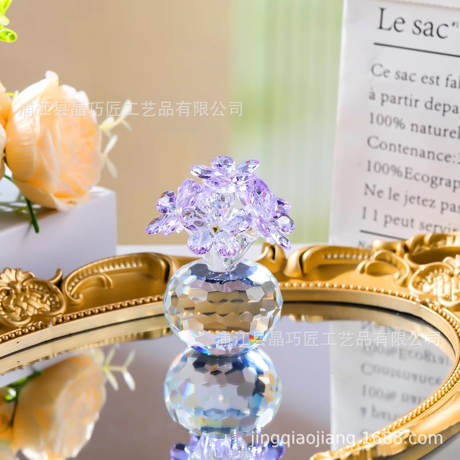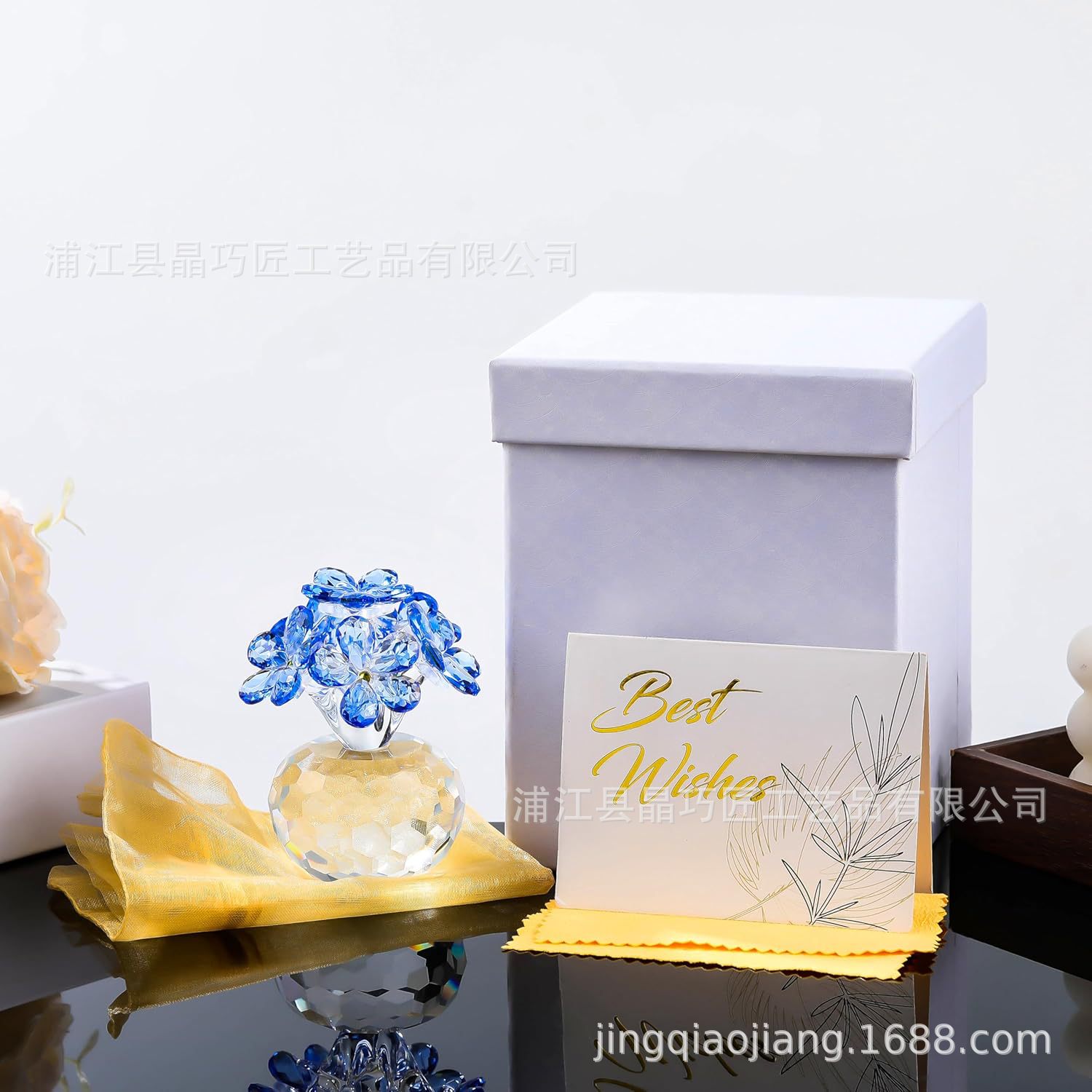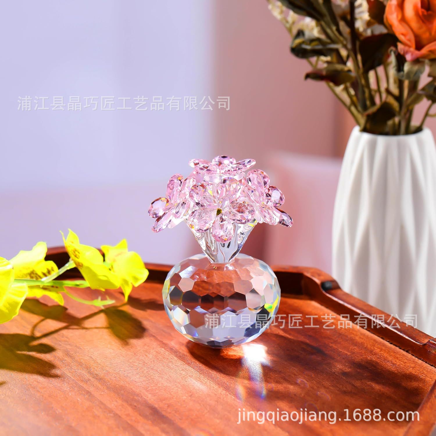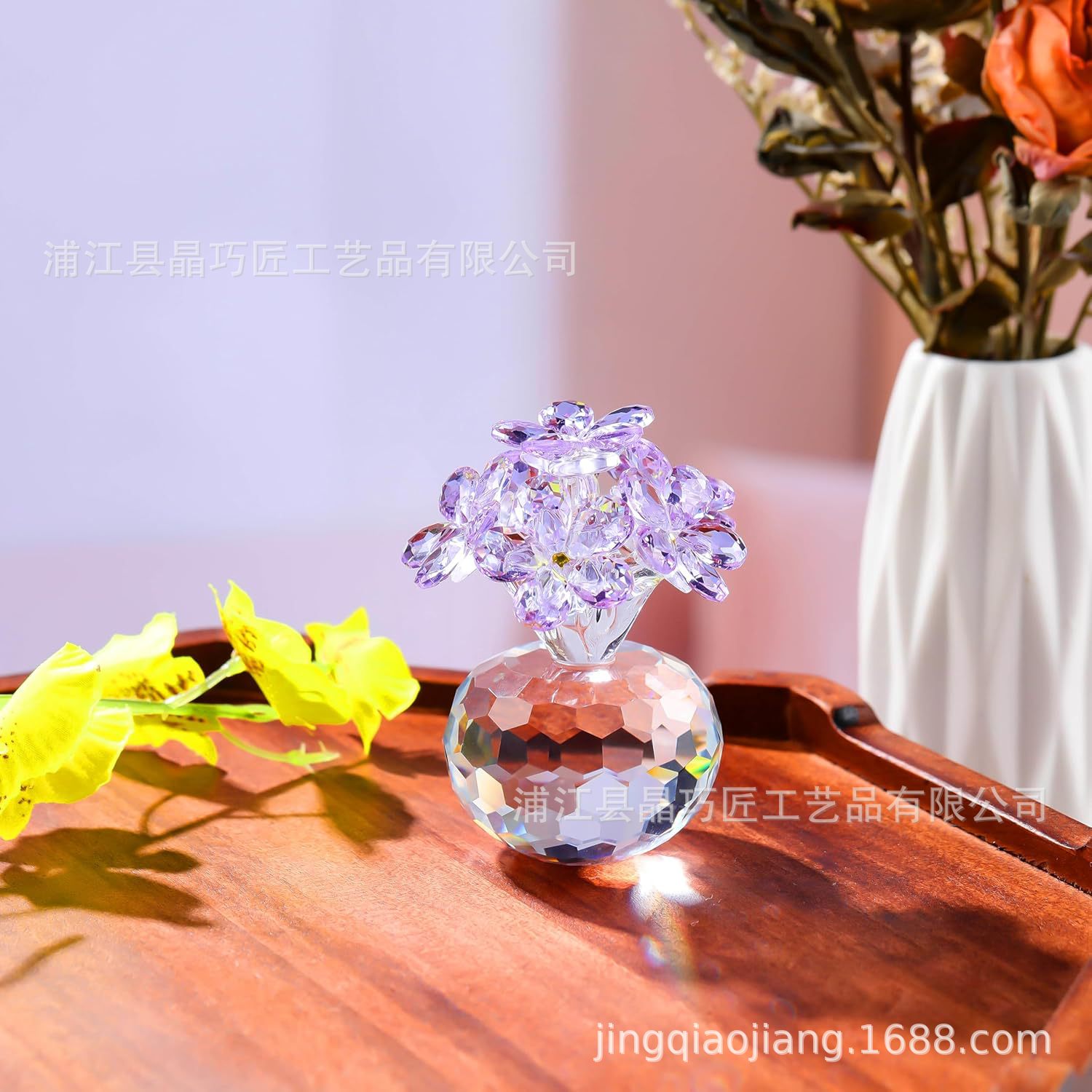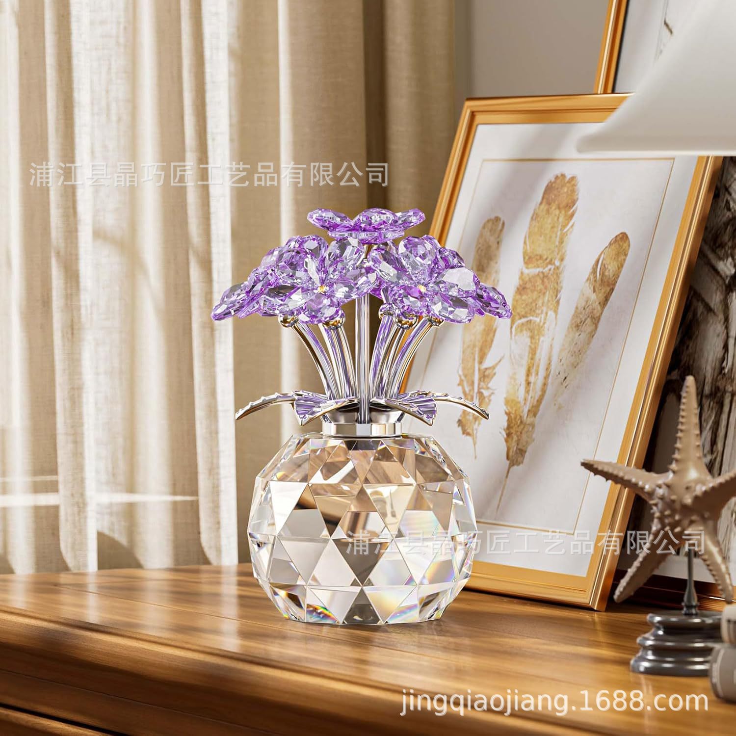 水晶六朵花摆件 北欧风家居装饰品 永恒爱情主题跨境批发礼品