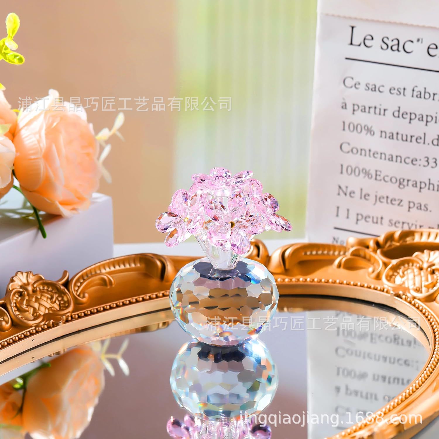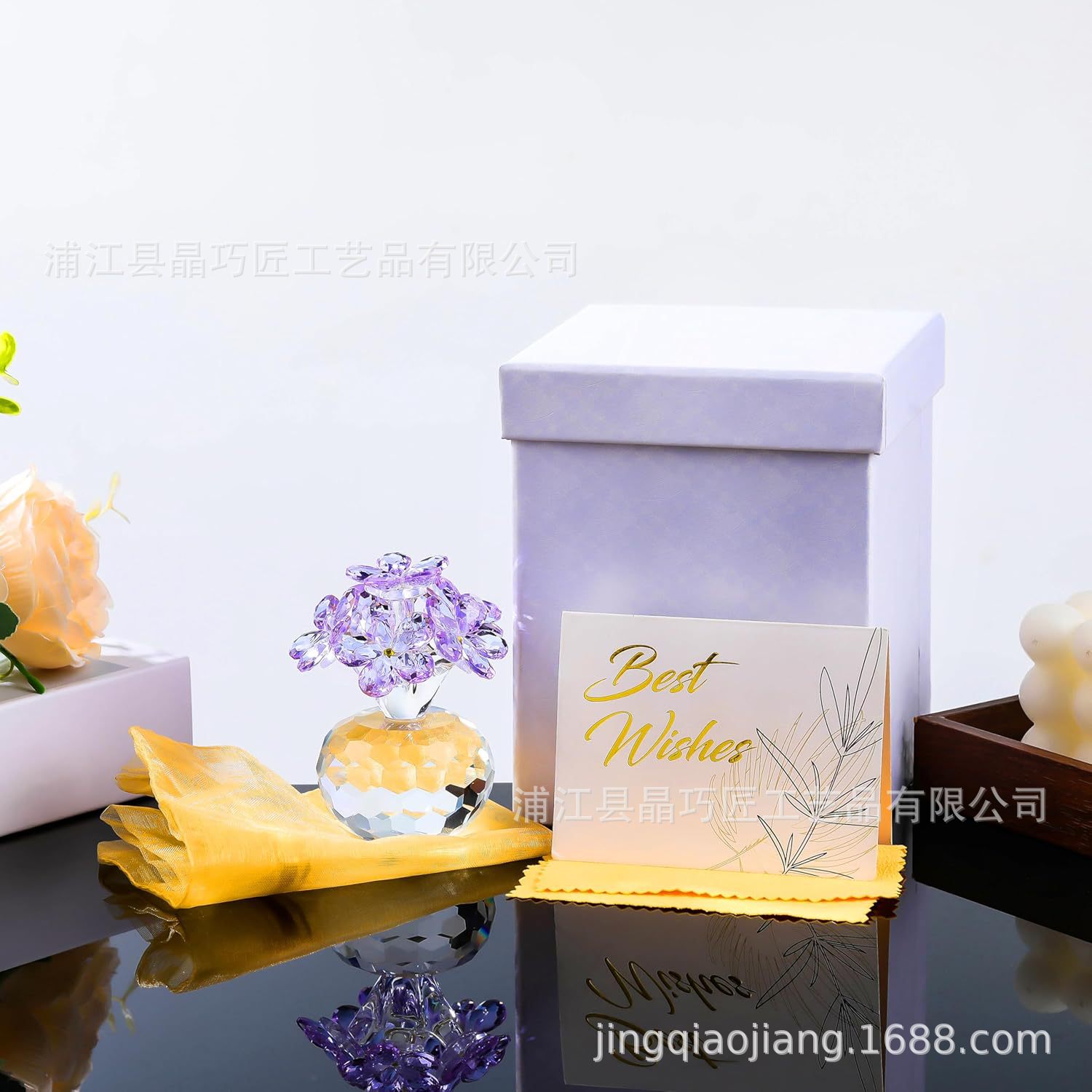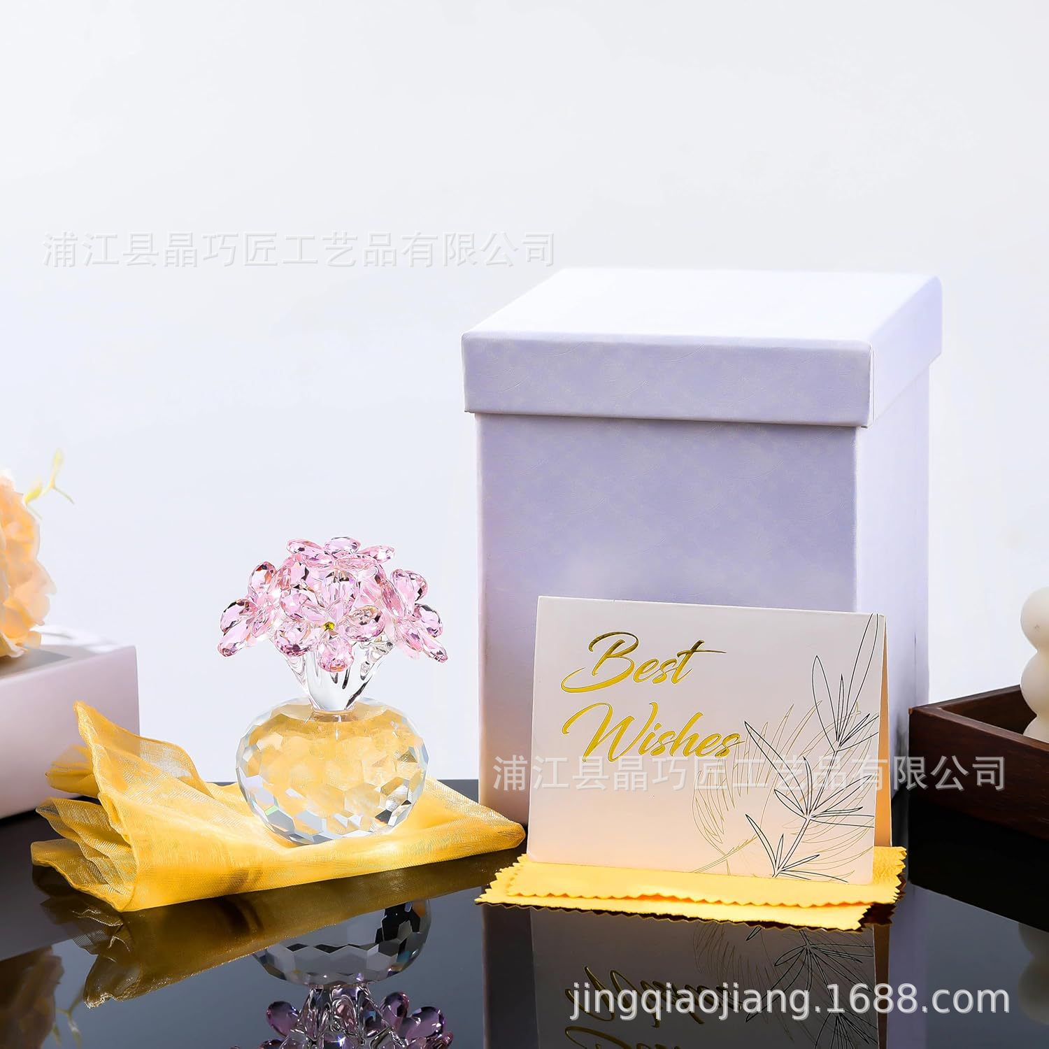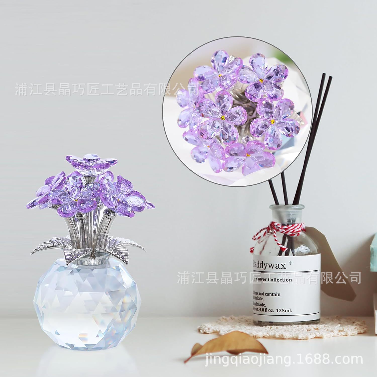 水晶六朵花摆件 北欧风家居装饰品 永恒爱情主题跨境批发礼品
