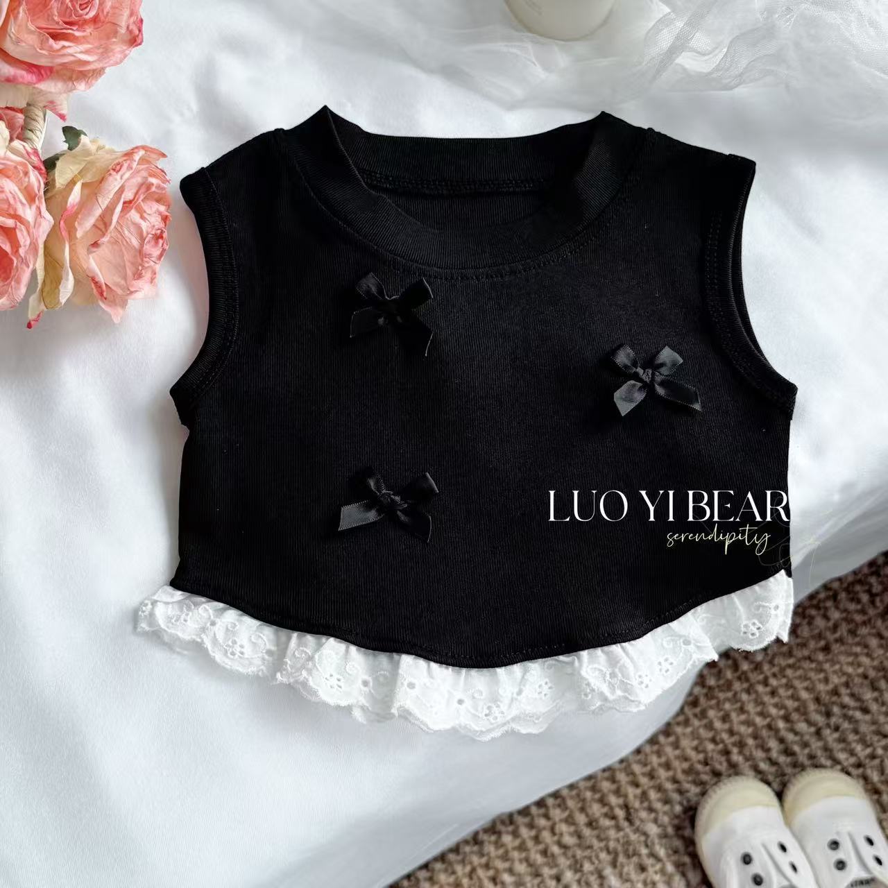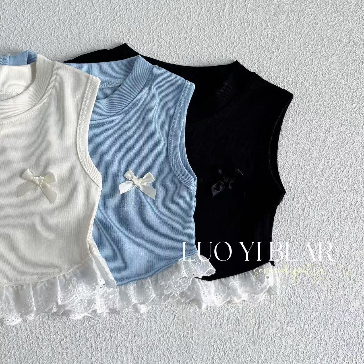25 여아 한국식 리본 조끼 여름 새 스타일 어린이 달콤한 스플 라이스 레이스 민소매 티셔츠 탑 트렌디스토어 가기