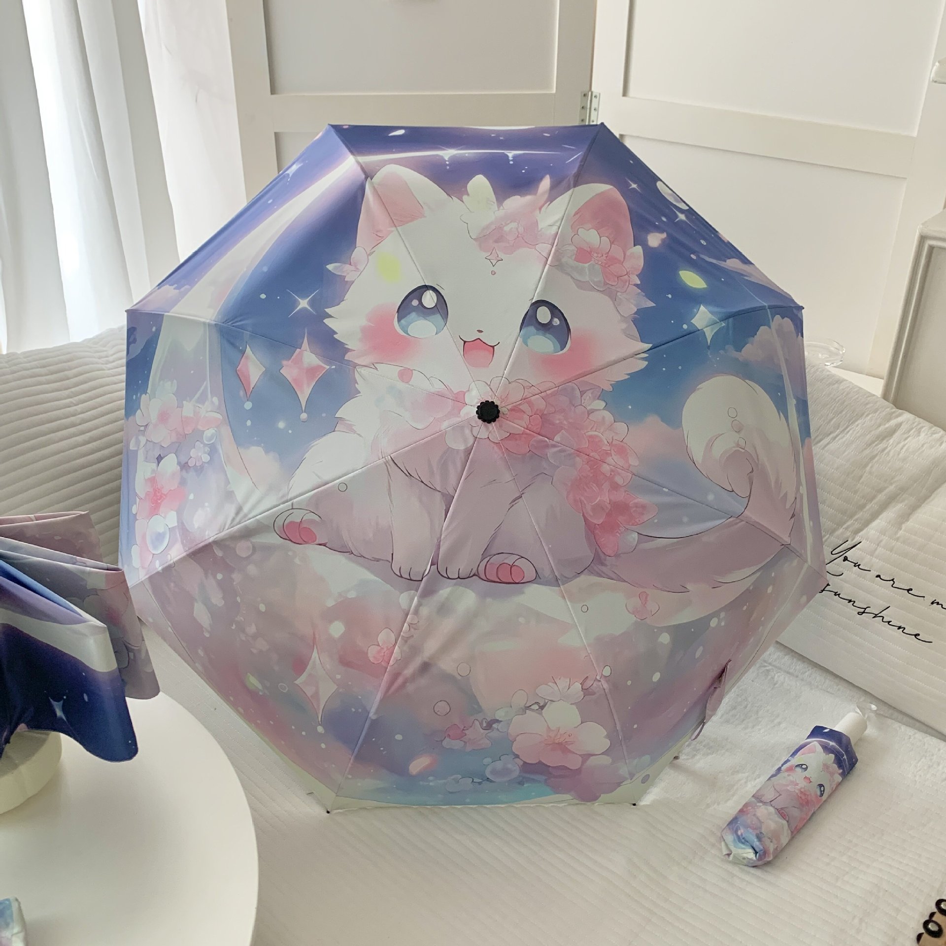 귀여운 고양이 자동 접는 우산 선스크린 자외선 차단제 이중 사용 휴대용 차양 우산 만화 태양 우산스토어 가기