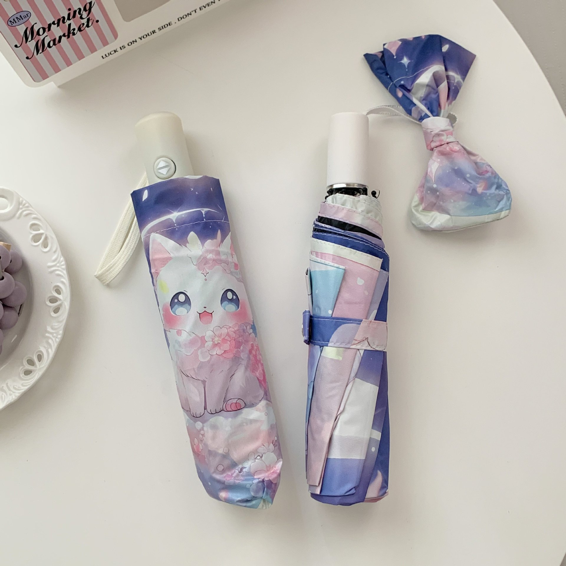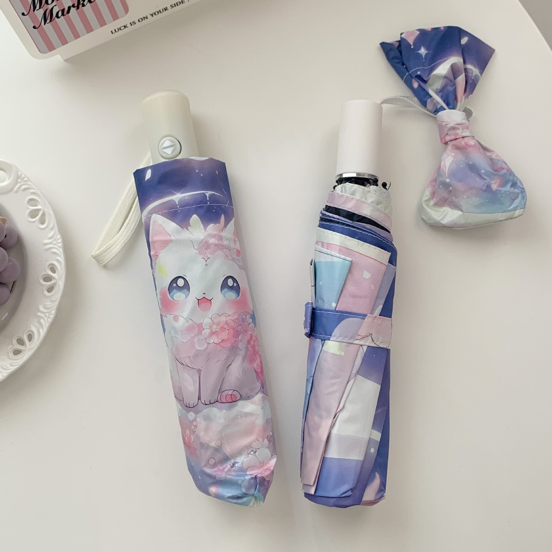 귀여운 고양이 자동 접는 우산 선스크린 자외선 차단제 이중 사용 휴대용 차양 우산 만화 태양 우산