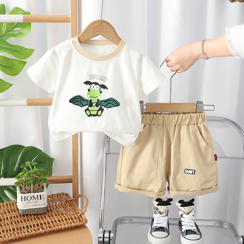 아기 여름 한 살 어린이 여름 옷 2025 여름 새 소년과 소녀 만화 둥근 목 반팔 투피스 세트스토어 가기