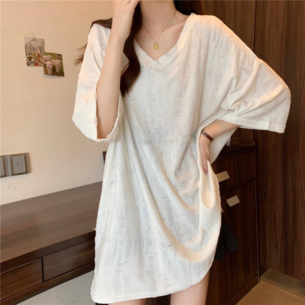 여성용 반소매 중장 탑 반소매 세련된 패션 플러스 사이즈 통통녀 여름용 루즈 벨리 커버 V 넥 반팔 티셔츠스토어 가기