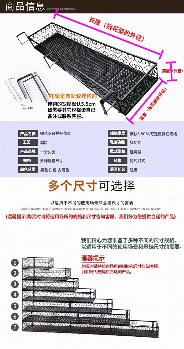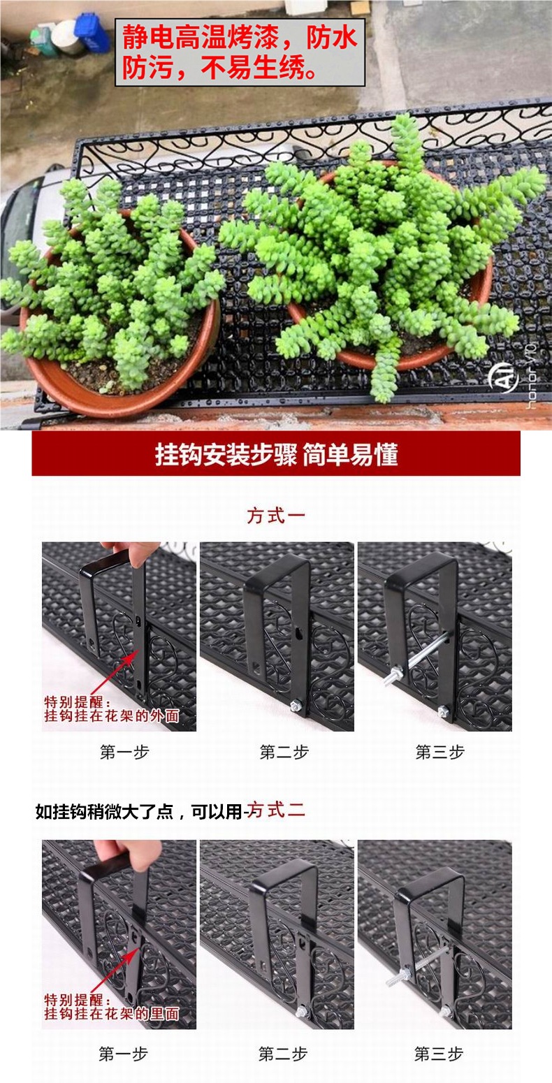 발코니 난간 꽃 랙 매달려 단철 난간 꽃 냄비 랙 실내 창틀 벽 매달려 다육 녹색 꽃 랙