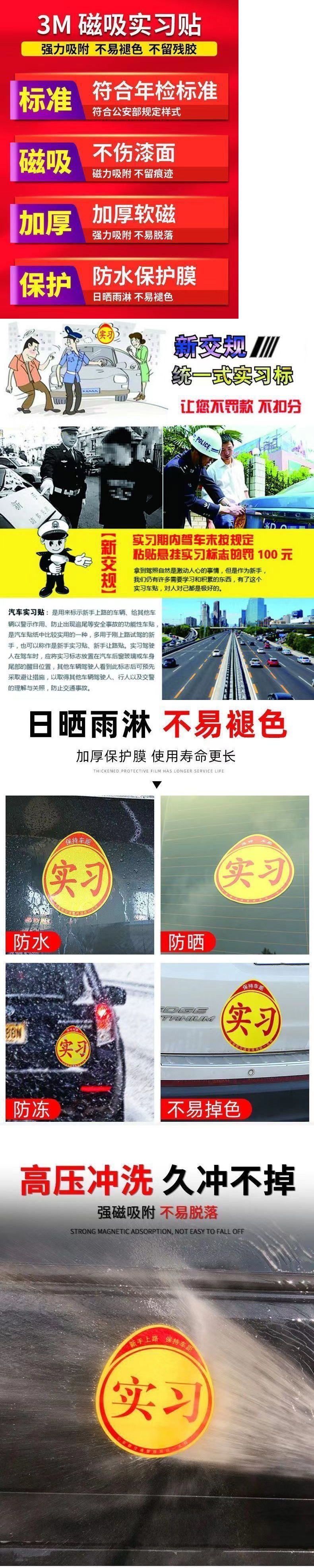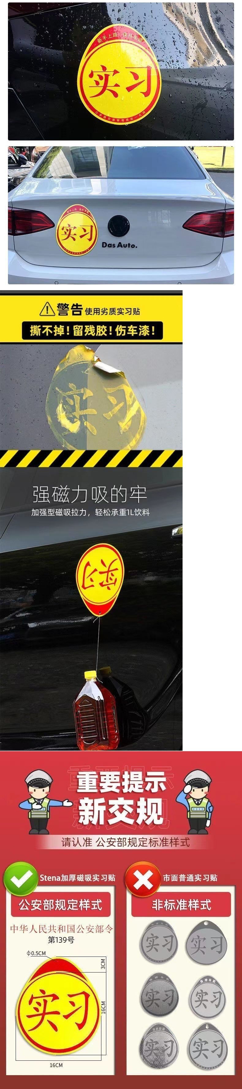 자동차 인턴쉽 라벨링 초보자 도로 표준 인턴십 자동차 스티커 안티 커서 마그네틱 인턴십 스티커 방수 자외선 차단제 강한 자기스토어 가기