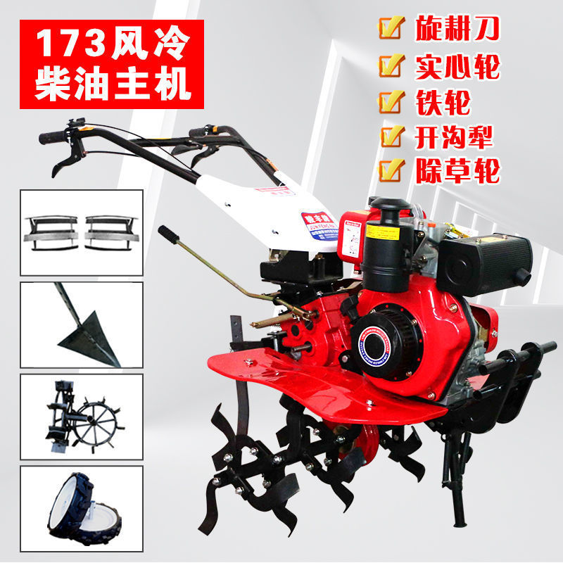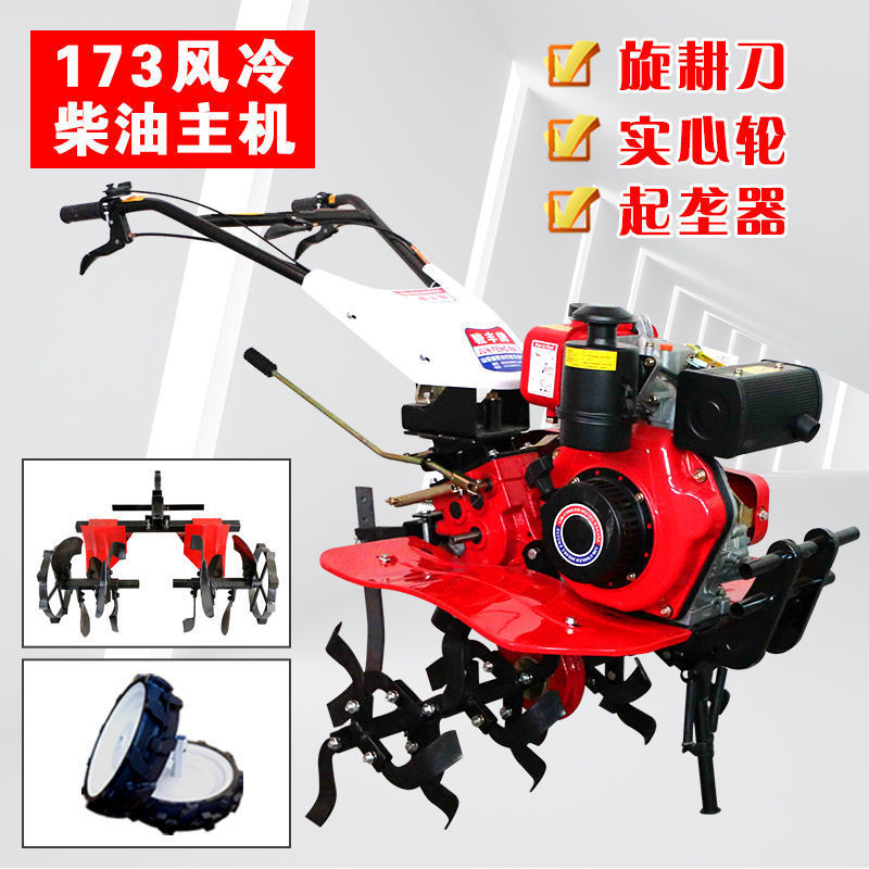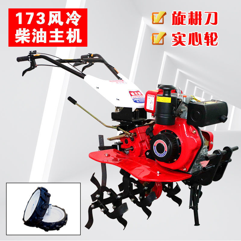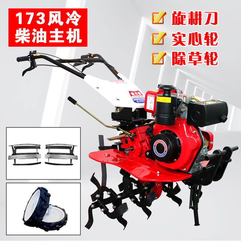 • 173 공냉식 디젤 엔진 + 회전식 경운기 + 솔리드 휠 - [기름 한정 제공, 8열 회전식 경운기, 고급형 모델]