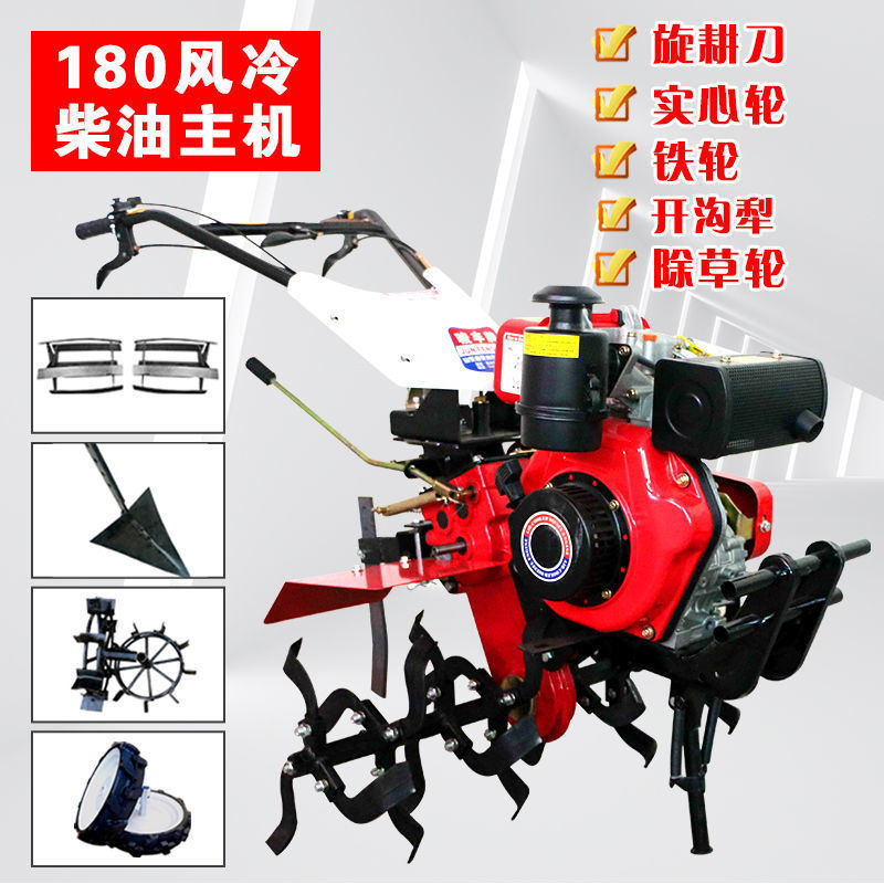 • 180 공냉식 디젤 + 회전 경운기 + 고무 바퀴 쟁기 및 제초 - [한정 기간 동안 무료 엔진 오일, 8열 회전 경운기, 고급 모델]