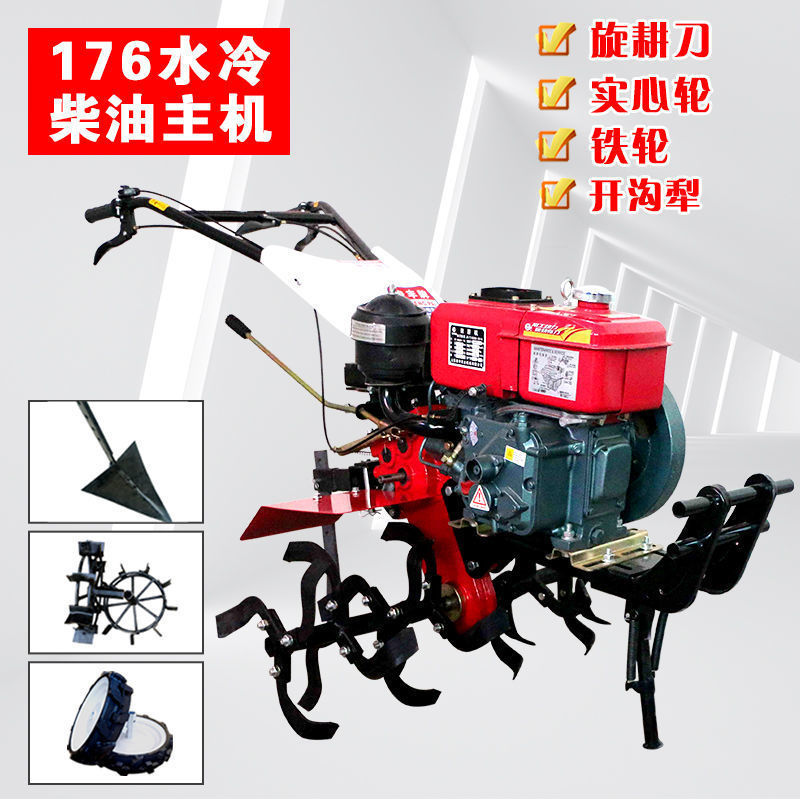 • 176 수냉식 디젤 + 회전 경운기 + 고무바퀴 + 철바퀴 + 쟁기 - [한정 기간 동안 무료 엔진 오일, 8열 회전 경운기, 고급 모델]