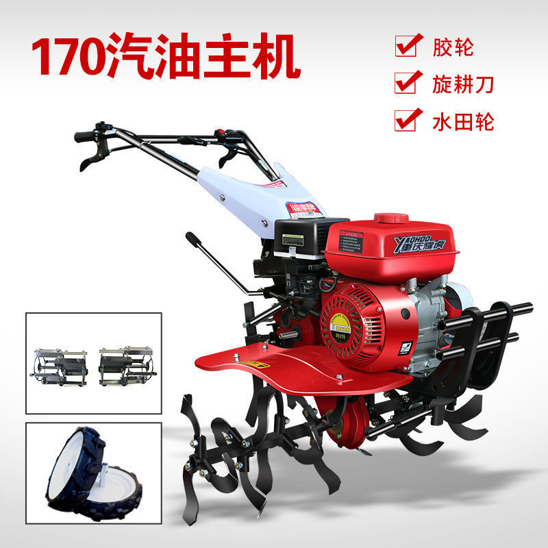 • 170 가솔린 엔진 + 회전식 경운기 + 솔리드 휠 - [기간 한정 무료 엔진 오일, 8열 회전식 경운기, 고급 모델]