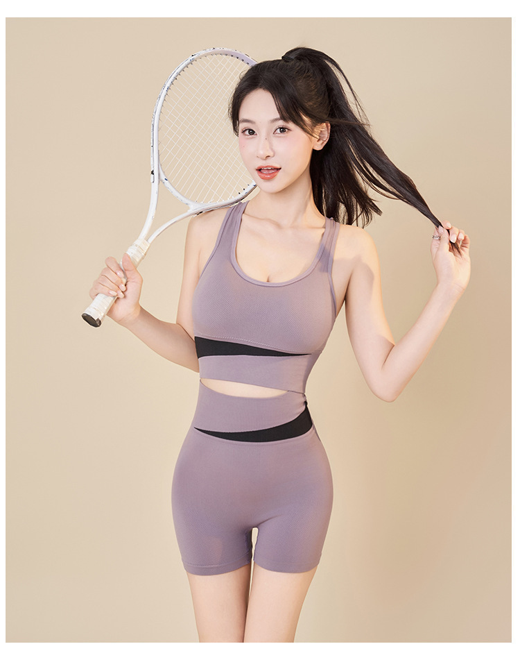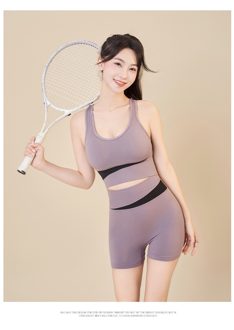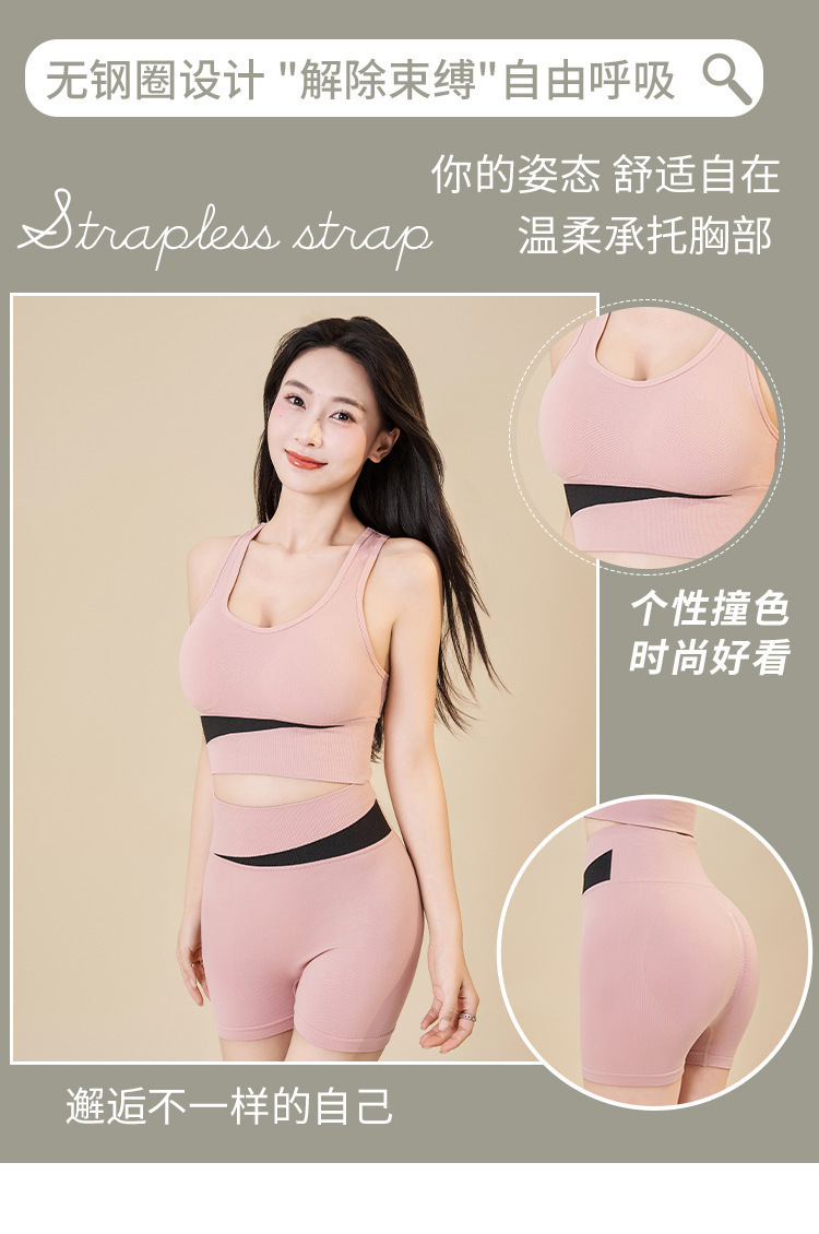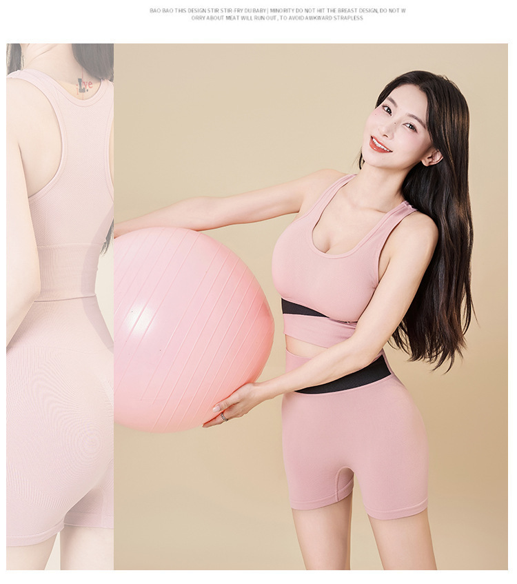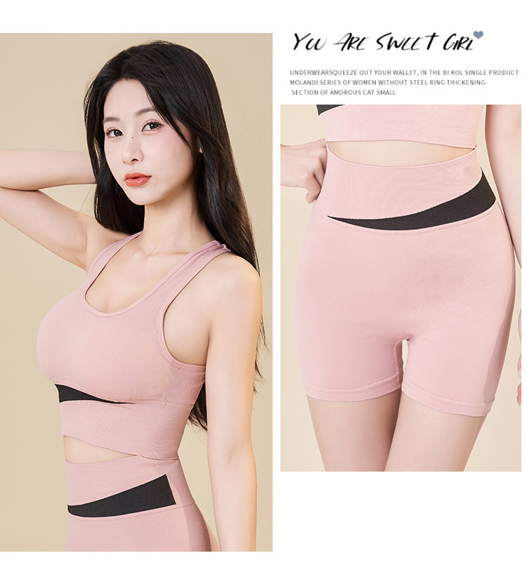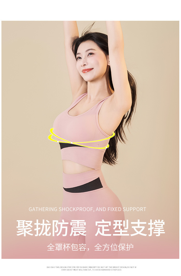 국경 간 복숭아 색 매칭 요가 의류 세트 빠른 건조 높은 허리 엉덩이 피트니스 세트 달리기 충격 방지 스포츠 세트 여성