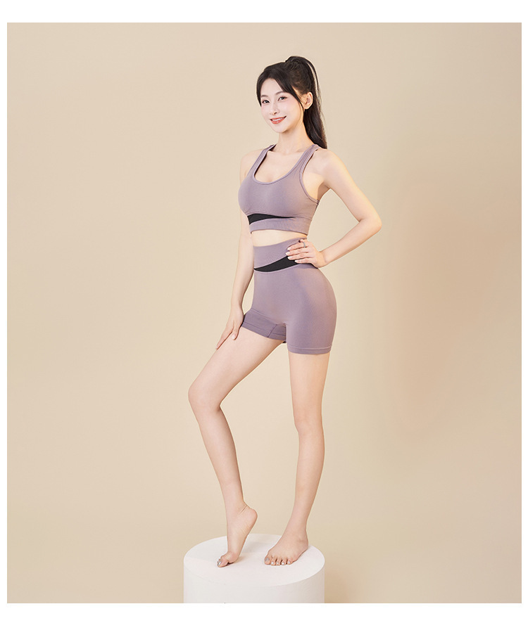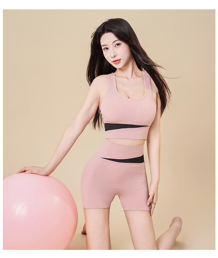 국경 간 복숭아 색 매칭 요가 의류 세트 빠른 건조 높은 허리 엉덩이 피트니스 세트 달리기 충격 방지 스포츠 세트 여성스토어 가기