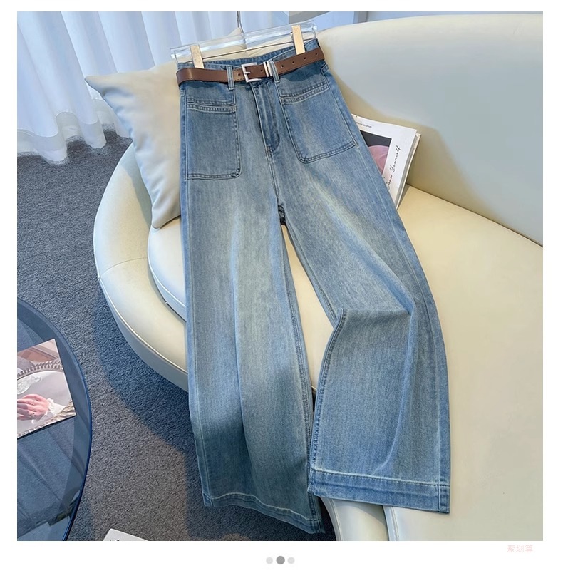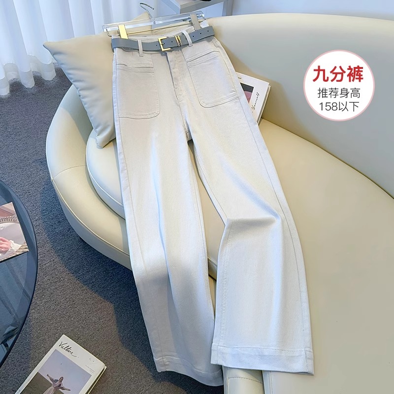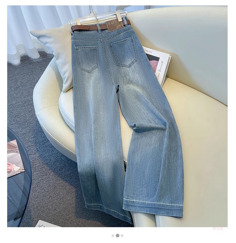 라이트 그레이 흰색 넓은 다리 청바지 여성의 봄 2025 새로운 인기 폭발 높은 허리 좁은 다리 바지스토어 가기