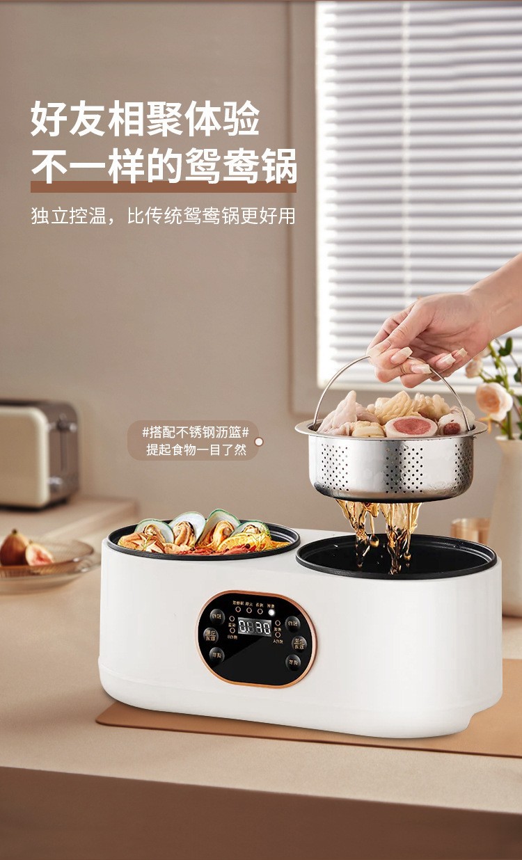 가정용 이중 담낭 이중 제어 전기 밥솥 자동 다기능 전기 요리 냄비 만다린 오리 전기 뜨거운 냄비 요리 지능형 예약