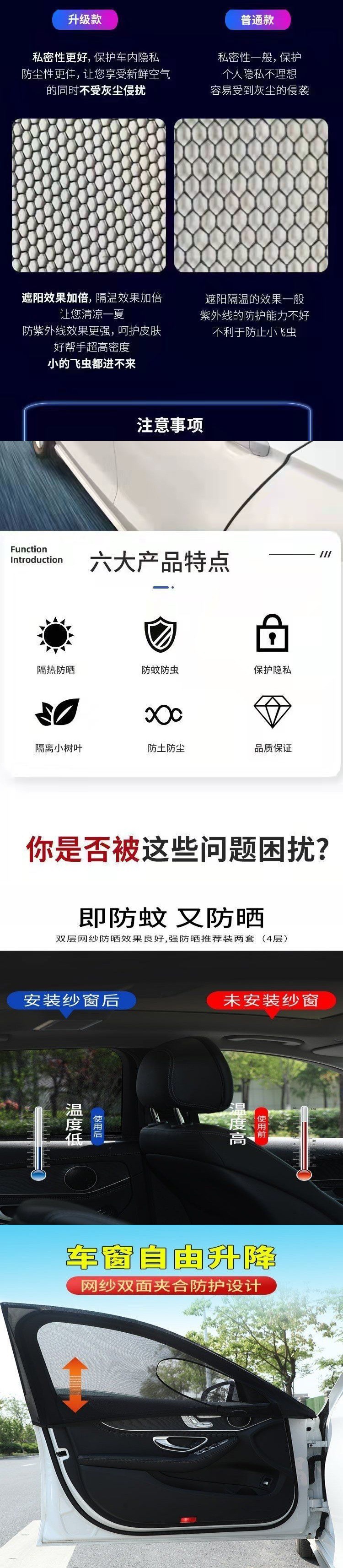 자동차 모기 방지 스크린 창 차양 커튼 자동차 커튼 모기장 그물 음영 커튼 단열 스크린 창 덮개