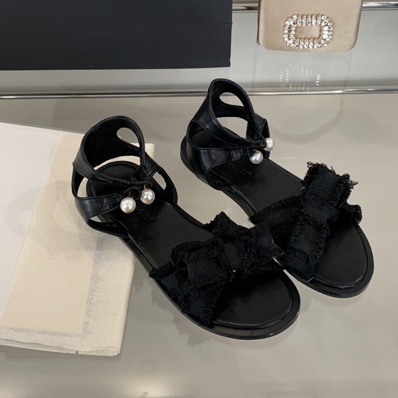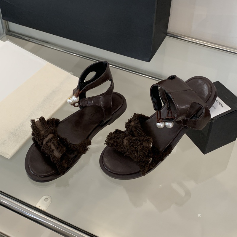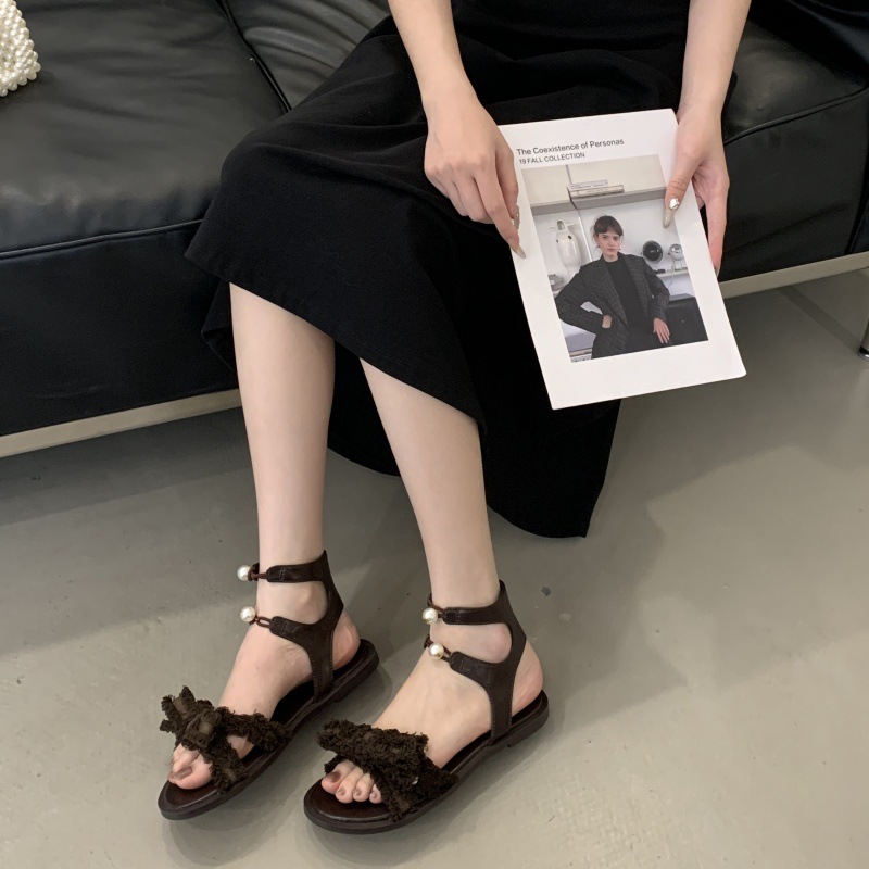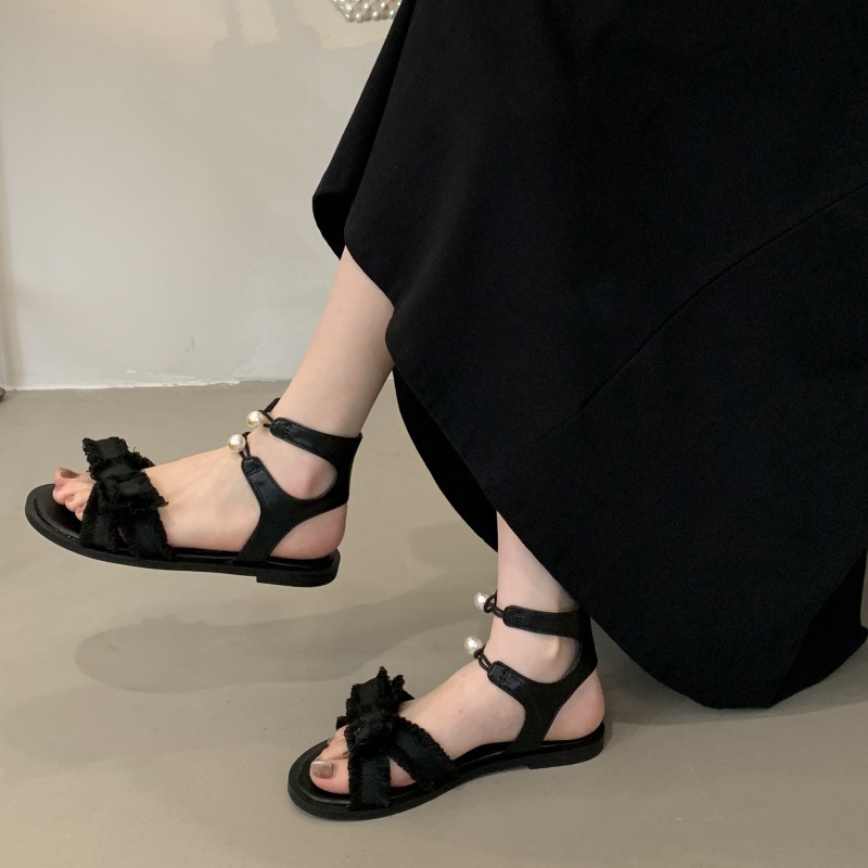 로마 샌들 여성 여름복 센스 올매치 2025 뉴 D 홈 더블 펄 버클 스커트 플랫 슈즈
