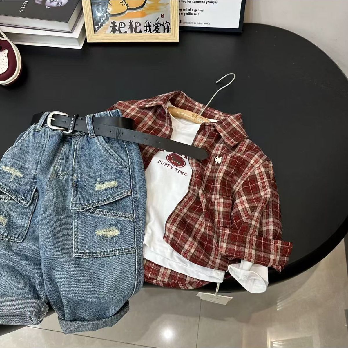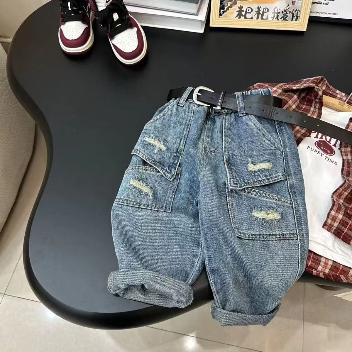 봄과 가을 남녀 아동복 청바지 아기의 서양식 어린이 성격 유행 브랜드 한국 스타일 유행 리핑 작업복 하렘 바지스토어 가기