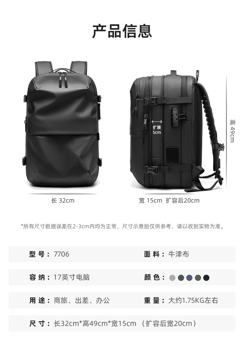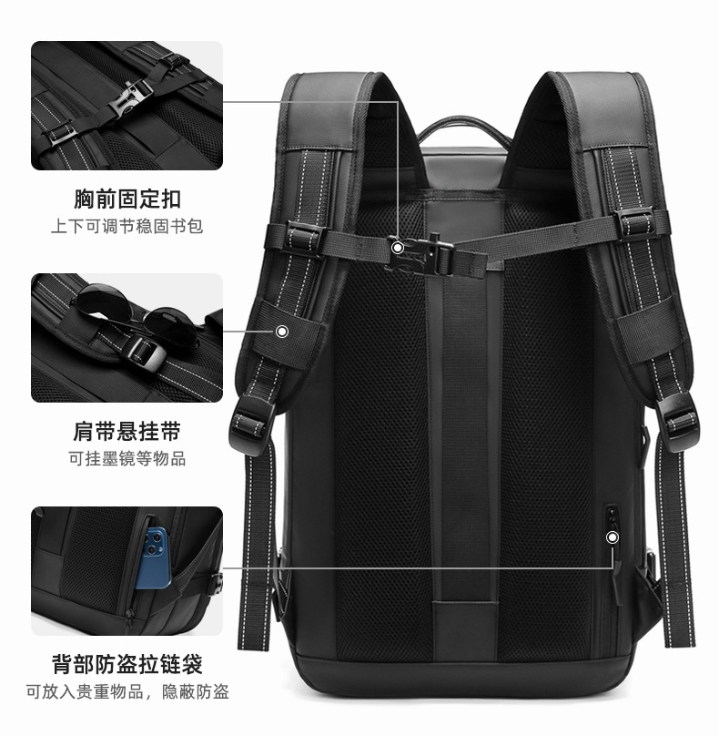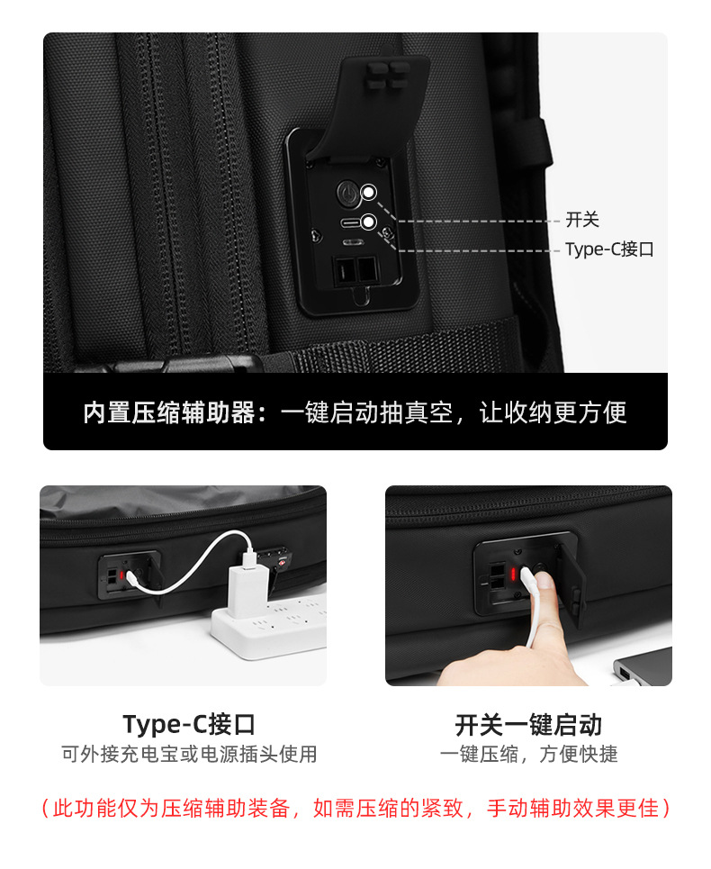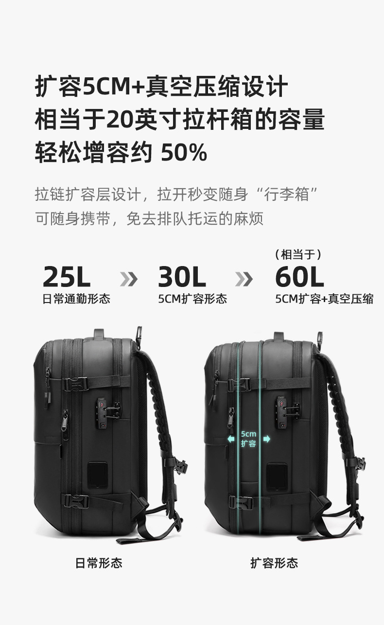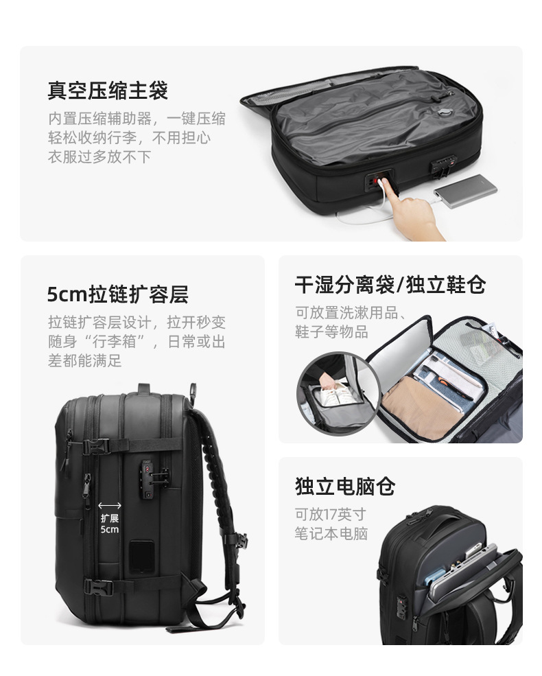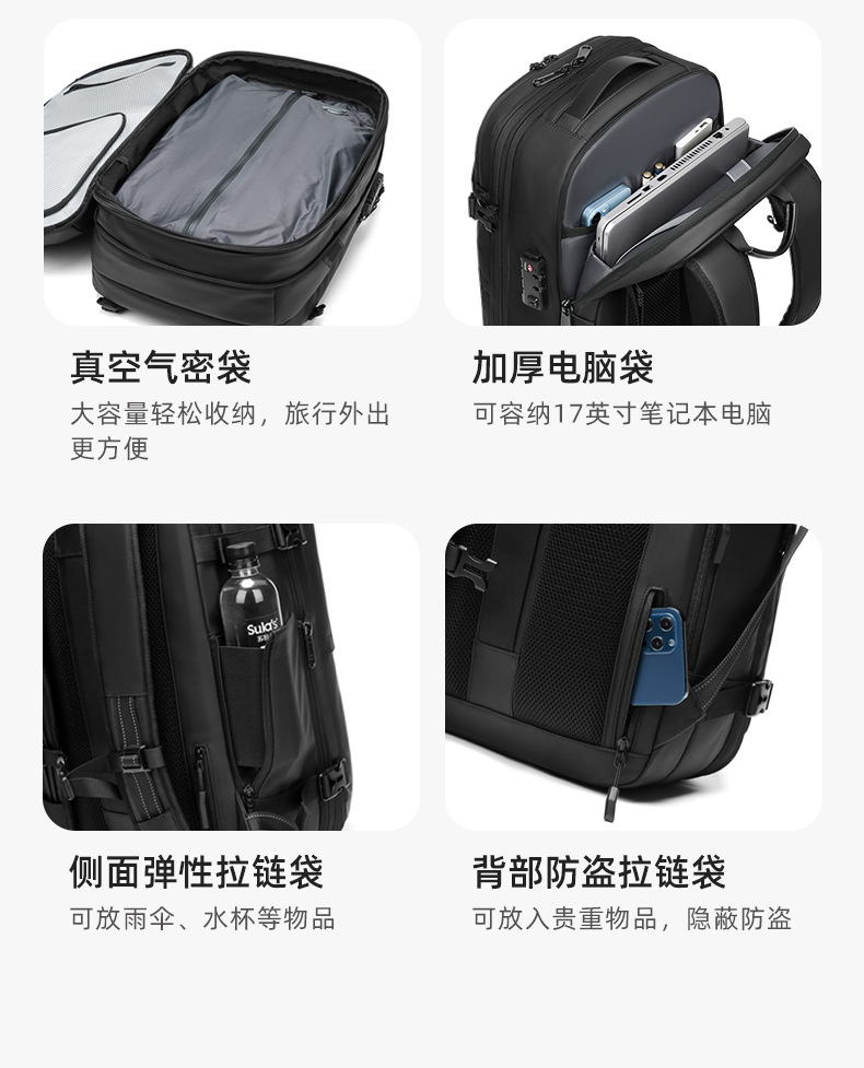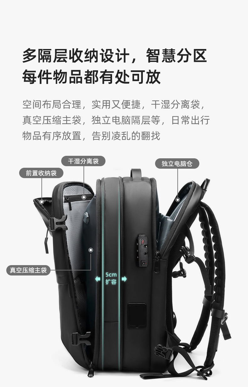 국경 간 새로운 남성 배낭 다기능 비즈니스 통근 여행 배낭 컴퓨터 가방 원버튼 진공 배낭