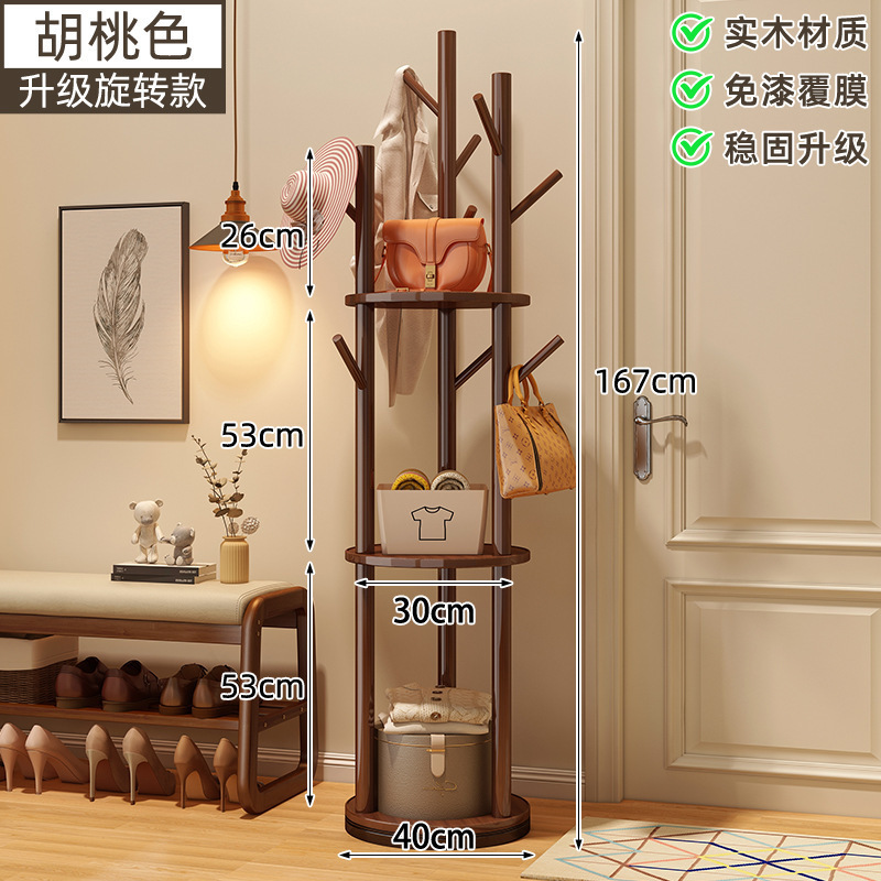 회전 가능한 단단한 나무 굵은 바닥 걸이 침실 옷걸이 가정용 실내 교수형 옷 보관 랙