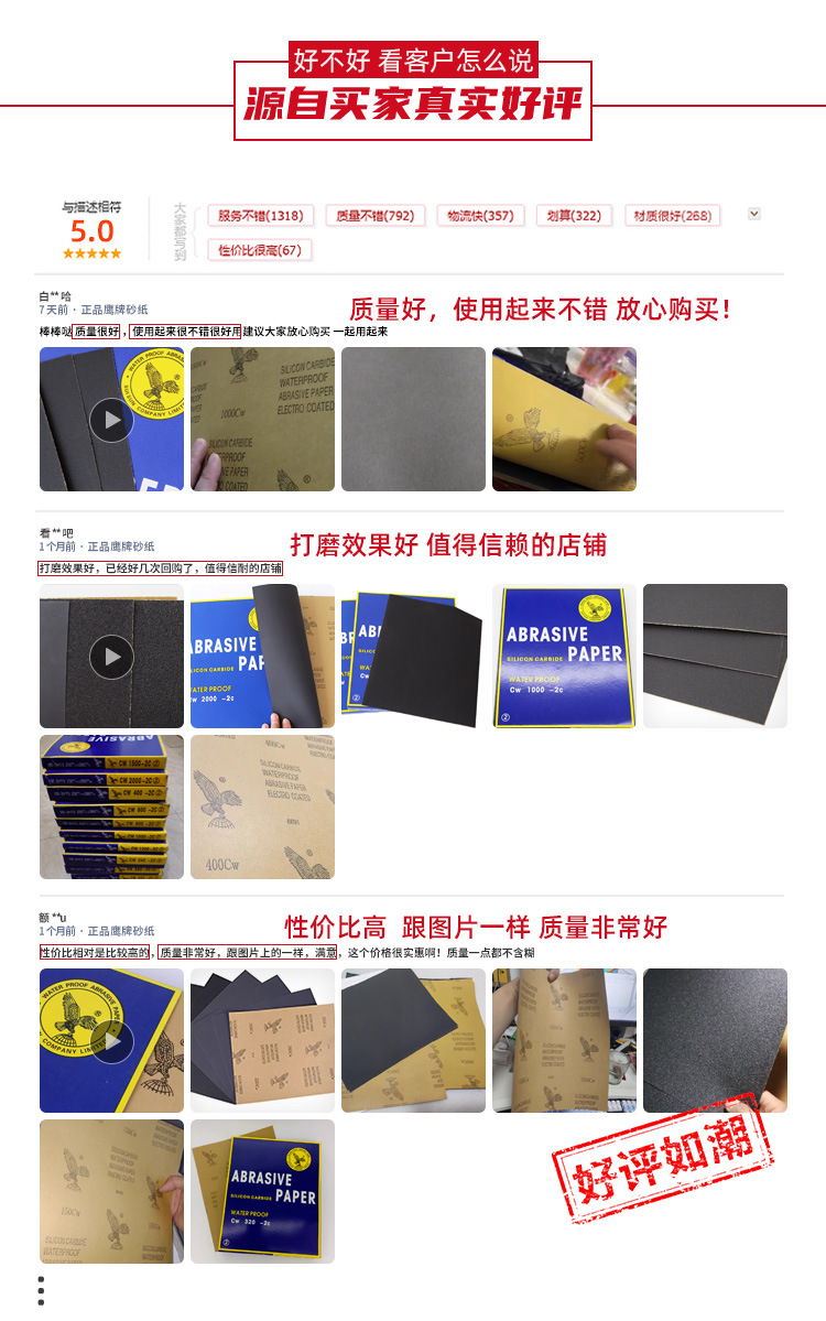 • 반구 독수리 브랜드 물 사포 500#【사진 10장】