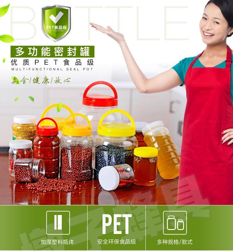 저장 항아리 2kg 꿀 꿀 병 플라스틱 병 두꺼운 꿀 항아리 병 1kg 조밀 한 세대스토어 가기