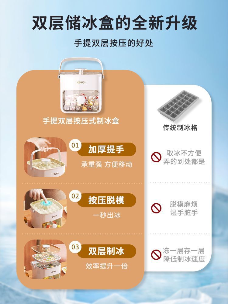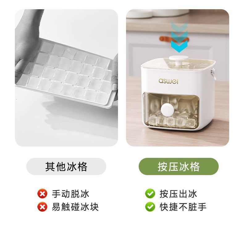 [원키 아이스 아웃] 아이스 큐브 금형을 눌러 식품 등급 냉장고를위한 대용량 아이스 박스 얼음 저장 장치 만들기