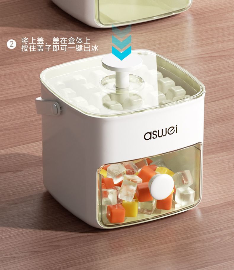 [원키 아이스 아웃] 아이스 큐브 금형을 눌러 식품 등급 냉장고를위한 대용량 아이스 박스 얼음 저장 장치 만들기스토어 가기