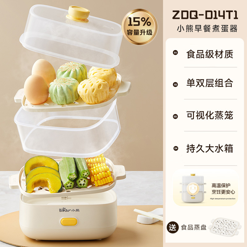 곰 계란 증기선 ZDQ-D14T1 가정용 자동 전원 오프 더블 레이어 작은 다기능 찐 계란 커스터드 아침 식사 기계 요리스토어 가기