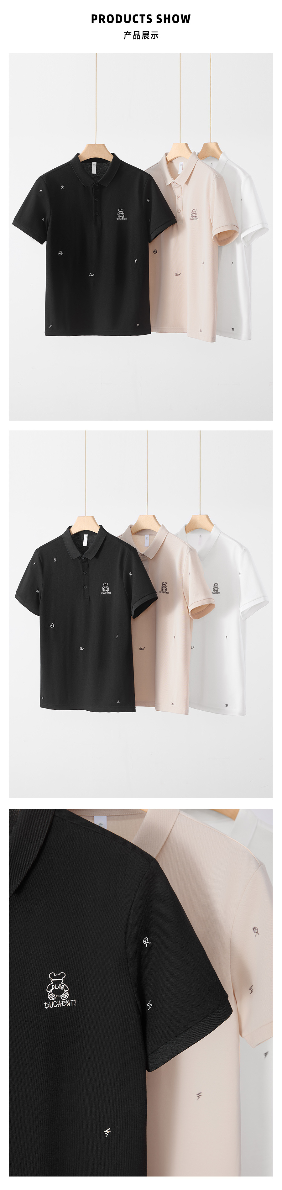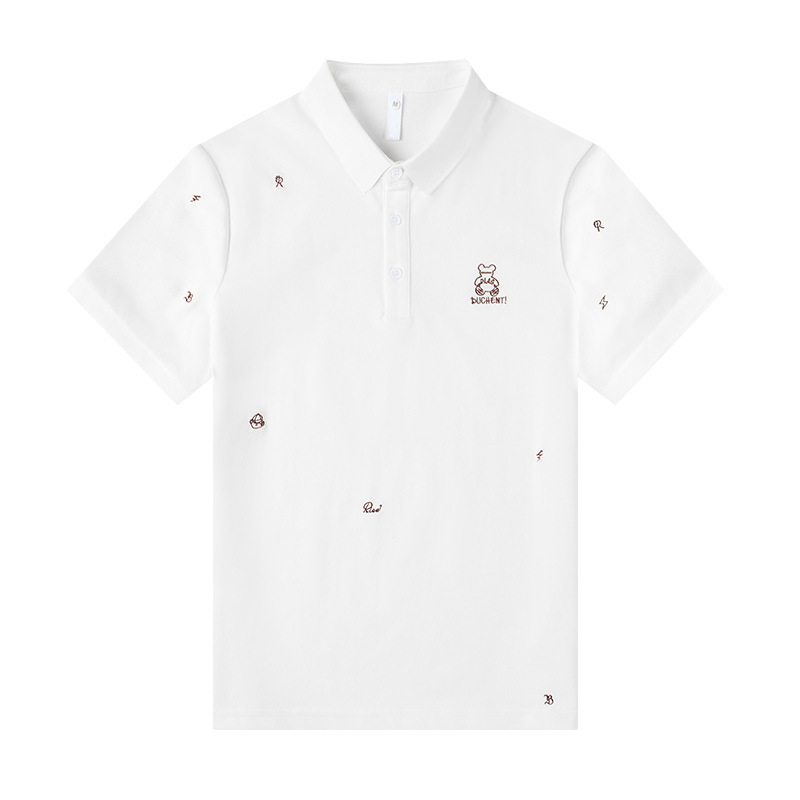 2025 년 봄과 여름 새로운 자수 폴로 셔츠 남성용 캐주얼 패션 옷깃 반소매 티셔츠 남성용 탑